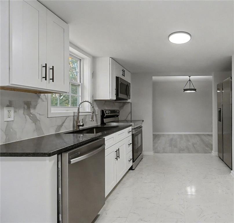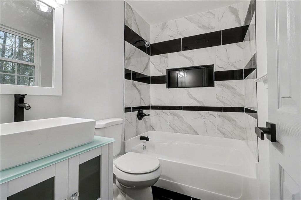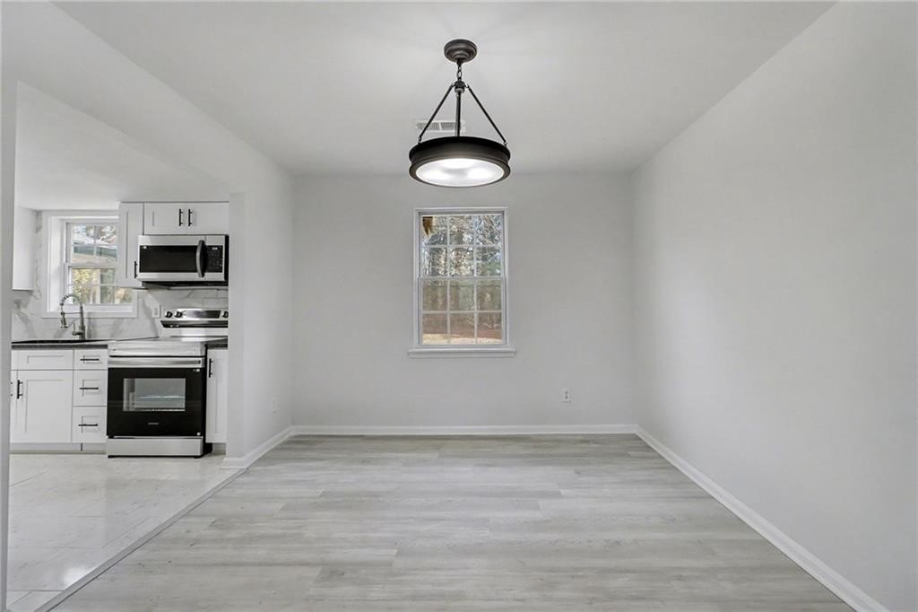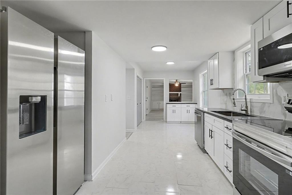 EVERYTHING NEW, GORGEOUS RENOVATION! Entryway welcomes you in to the living room, separate dining room, and family room with cozy fireplace. Enjoy the Chef's kitchen surrounded by white cabinets, granite countertops, and 4 piece stainless steel appliance package. Relax in your primary bedroom retreat featuring dual closets and an attached bathroom with double vanities. Outside, enjoy the covered patio, spacious backyard, and fire pit pad, perfect for entertaining, playing, or relaxing. The 2 car garage with opener is convenient and spacious. Walking distance to Wade Walker Park & YMCA, and close to all that Stone Mountain Park has to offer! SELLER IS OFFERING $5,000 TOWARDS BUYER'S CLOSING COSTS!