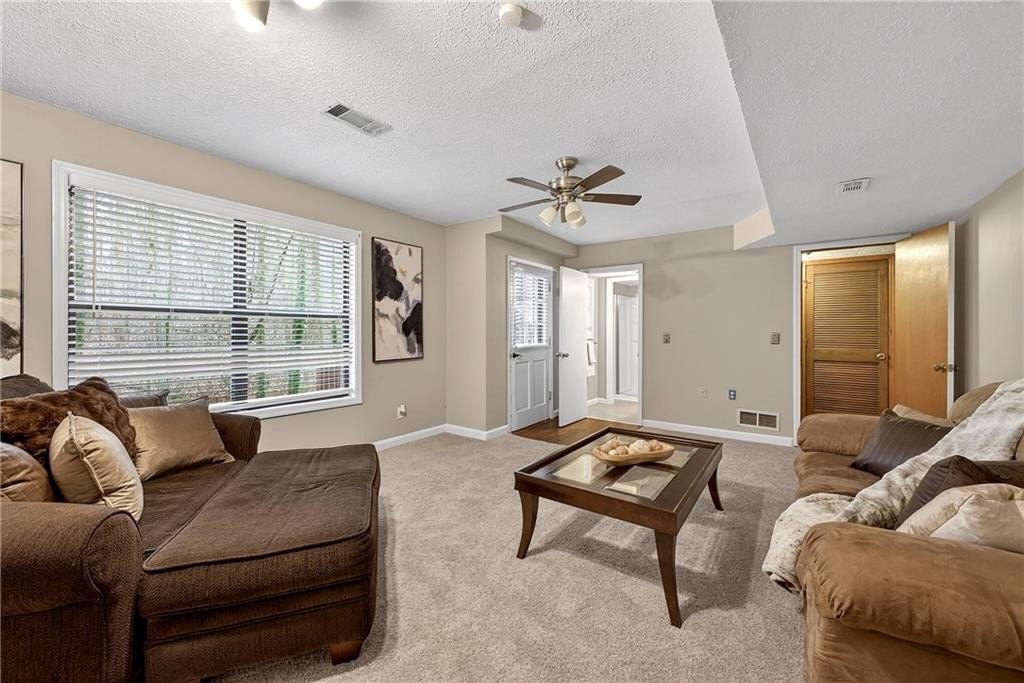 Welcome to this beautifully refreshed, move-in-ready 4-bedroom, 3-bathroom home nestled in one of Woodstock's most established and desirable neighborhoods with no HOA. With thoughtful updates including brand-new interior paint, new carpet, and hardwood floors throughout the main living areas, this property offers modern comfort with timeless charm. Inside, the bright and spacious living room features stunning hardwoods that create a warm, inviting backdrop for everyday living and entertaining. The well-appointed kitchen provides ample cabinetry and prep space, making meal prep and hosting effortless. This home offers abundant flexibility with four generously sized bedrooms, three full bathrooms, and a versatile flex room ideal for a home office, playroom, media room, or guest space perfect for adapting to your lifestyle needs. Step outside to one of this home's most impressive features: a large two-tiered deck that dramatically expands your outdoor living space. Whether you're grilling, entertaining, or enjoying quiet evenings overlooking the yard, these expansive decks provide the perfect setting for gatherings of any size. The private backyard offers even more room to relax, garden, or play. Conveniently located minutes from parks, shopping, dining, and the vibrant Downtown Woodstock district, this home combines space, style, and location in one exceptional package.