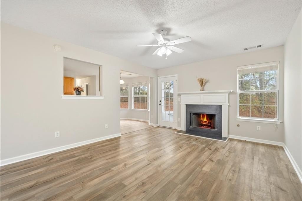 Move-In Ready! November 2025 upgrades include: a renovated kitchen with granite countertops and a new sink, new wood flooring on the main level, new carpet in all four bedrooms, fresh interior paint, newly painted garage door exterior and interior garage walls, cleaned and painted gutters, and professionally washed exterior siding. The home also features a 2023 HVAC system, a 2019 water heater, a 2019 dishwasher, and a fenced, private backyard. Open floor plan with a two-story living room, cozy fireplace, luxurious dining area, spacious primary suite with a walk-in closet, and bright bedrooms. Conveniently located near shopping, parks, restaurants, and major highways. A must-see ---Perfect for homeowners or investors.