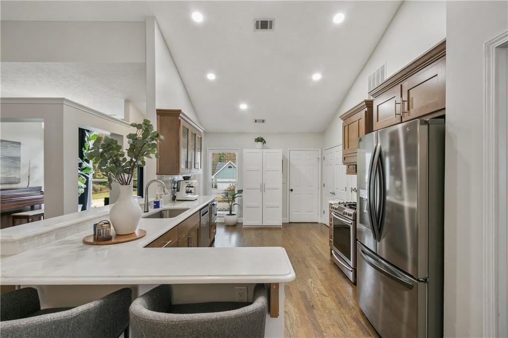 Welcome to this beautifully renovated ranch, where modern comfort meets timeless charm. Soaring ceilings and a bright, open floor plan create an immediate sense of space and warmth the moment you enter. Gleaming hardwood floors run throughout, infusing every room with inviting elegance. At the heart of the home is a fully updated kitchen featuring stainless steel appliances, marble countertops, and a stunning marble backsplash. The open layout flows seamlessly into the living and dining areas perfect for everyday living and effortless entertaining. Brand-new double pane windows provide excellent insulation, reducing outside noise and helping maintain comfortable indoor temperatures year round. The renovated bathrooms offer spa-like luxury, including a stylish shower with custom tile work, modern fixtures, and thoughtful design elements that elevate the entire space. Step outside to your private backyard oasis: a fully fenced yard offering comfort, privacy, and ample room to relax, entertain, garden, or play. It’s truly an extension of the home’s living space. Updated from top to bottom, this move-in-ready ranch blends contemporary finishes with classic appeal providing a luxurious and welcoming place to call home.This property belongs to a community with optional HOA membership.