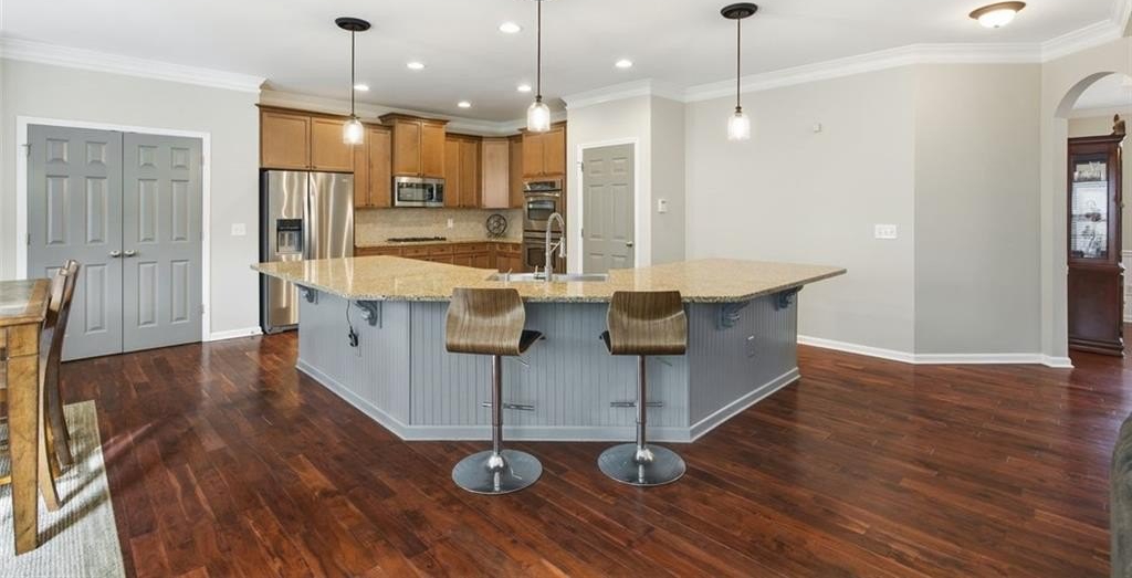 Welcome to 4965 Cheltenham Place, a well-maintained home offering generous space, comfort, and excellent long-term potential. Located in the top-ranked South Forsyth school district, this property sits on a large, private lot with views of the wooded neighborhood area, creating a quiet setting with natural surroundings. Inside, the home features multiple flexible living areas, including a separate dining room, an office, and a front sitting room—ideal for a variety of uses such as work, entertaining, or everyday living. The spacious kitchen includes an expansive island, double ovens, a gas stove, and a farmhouse-style sink, creating a functional space for cooking and gathering. Upstairs, the oversized primary suite includes a private seating area, ample closet space, and a large en-suite bath. A separate en-suite bedroom, along with two additional well-sized secondary bedrooms connected by a Jack-and-Jill bath, offer versatility for various household needs. The home also includes a large unfinished walk-out basement, providing opportunities for future expansion such as additional living space, recreation areas, storage, or other custom preferences. Located on a quiet, flat, horseshoe-shaped street within Brandon Hall, the property benefits from a low-traffic setting. The community offers a variety of amenities, including a junior Olympic pool with water slide, tennis and pickleball courts, basketball area, playground, and green spaces. Brandon Hall also hosts organized community activities and events. The location provides convenient access to GA-400, shopping, dining, medical facilities, Windermere Golf Club, and Lake Lanier.