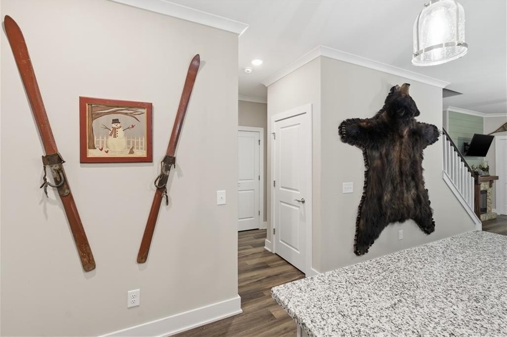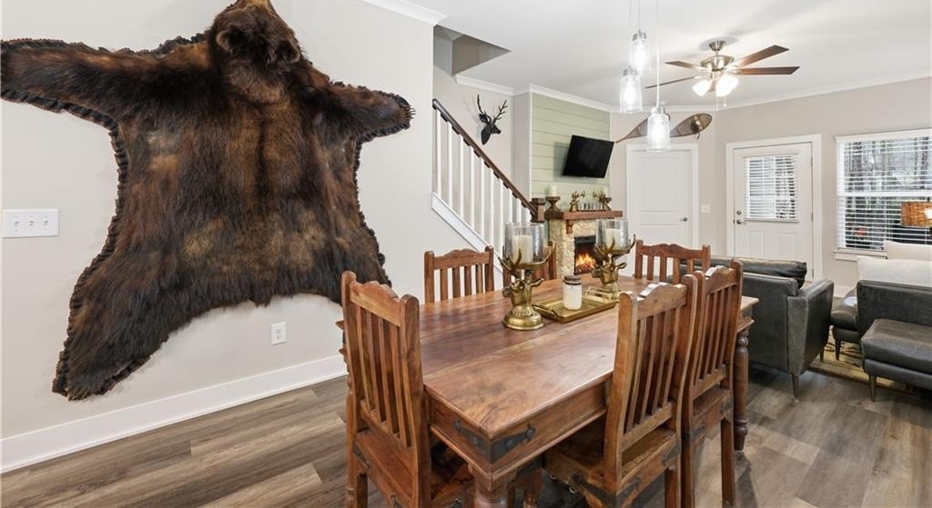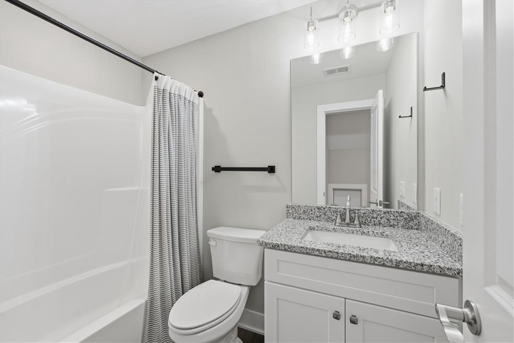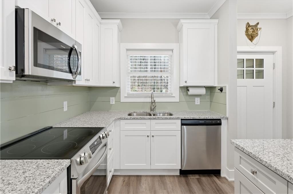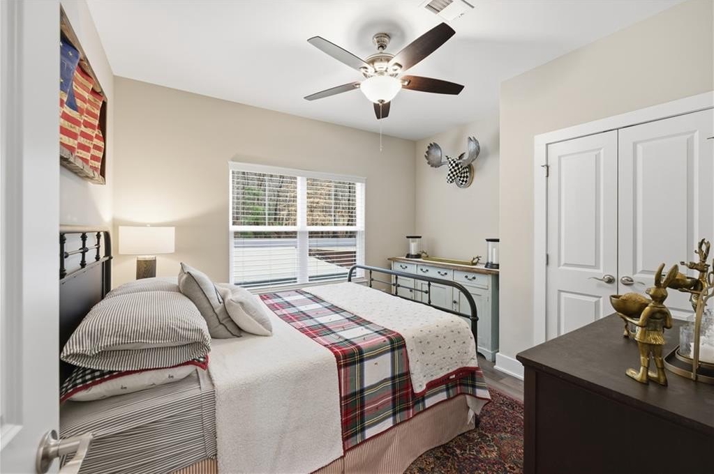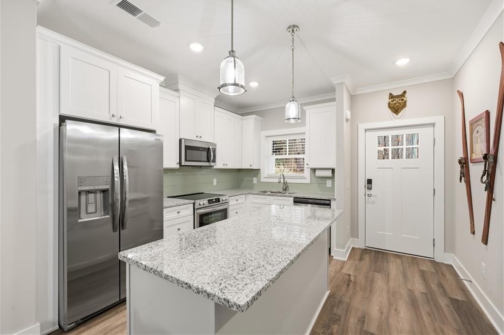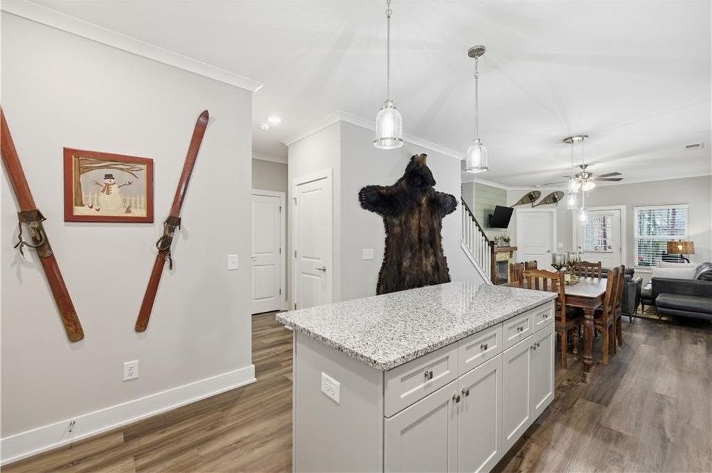 Recently built in 2024, this like new home is close to the North Gate and offers a charming Craftsman cottage style with peaceful surroundings, beautiful finishes, and an ideal layout with 3 bedrooms and 3 full baths. Nestled in the foothills of the North Georgia mountains, Lake Arrowhead offers five-star amenities including two pools, marina, lake, club house, golf course, restaurant, walking trails, parks, tennis, pickleball and more! Brimming with curb appeal, this home greets you with a covered front porch, easy to maintain landscaping, and a serene setting. Step inside to an inviting open concept main level featuring LVP flooring, neutral paint tones, and abundant natural light. The stylish kitchen offers white cabinetry, stainless steel appliances, granite countertops, a center island with bar seating, and a pantry. The adjacent dining area flows seamlessly into the family room making it the perfect spot for effortless entertaining or cozy everyday meals. The family room is the heart of the home, showcasing a shiplap accent wall and direct access to the covered back patio. The main level primary suite is spacious and relaxing, complete with LVP flooring, views of the backyard, and an en suite bath featuring an oversized tile shower, a granite topped vanity with dual sinks, and a walk in closet. An additional main level bedroom and a full bath with a shower/tub combo offer convenience for guests or family. The laundry closet and an extra storage closet are also located on the main floor. Upstairs, you’ll find a private third bedroom with its own full bath, making it an excellent teen suite, guest retreat, or flexible bonus space ideal for a home office, media room, or game room. A walk in attic adds even more storage options. Step outside to a covered back patio overlooking the tree lined backyard; an ideal spot to unwind or entertain. This home is move in ready and thoughtfully designed, blending comfort, style, and functionality in a peaceful setting. Yard maintenance included with HOA!