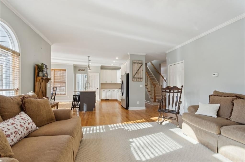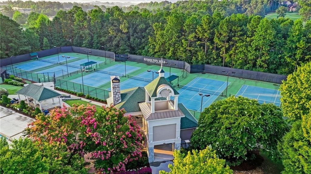 Beautiful home in sought-after Hamilton Mill, located in the desirable Mill Creek cluster. A grand 2-story foyer and great room welcome you into this light-filled, open-concept floor plan. The kitchen features white cabinets, gas cooktop, KitchenAid appliances, and flows seamlessly into the spacious breakfast area and warm keeping room with stacked-stone fireplace. The owner’s suite offers a generous bedroom and en suite bath, while the secondary bedrooms are equally spacious. A standout feature upstairs is the wall lined with custom built-ins overlooking the great room, providing character. Enjoy outdoor living on the newly enlarged deck with Trex and metal railing overlooking a serene creek and tree buffer. The fenced backyard features durable metal fencing and fresh sod—perfect for play or pets. This well appointed home blends comfort, style, and wonderful community living. Resort-style Hamilton Mill amenities include a remodeled workout room/2 pools with special features/pro shop for tennis courts and pickleball courts/basketball/volleyball/open field for soccer, lacrosse, etc./playground/lake! Hamilton Mill Country Club is conveniently located in the community. Be sure to stop by the pro shop to inquire about membership. The surrounding area boasts beautiful Little Mulberry Park, easy access to I85, shopping, restaurants, and the conveniences of everyday life.