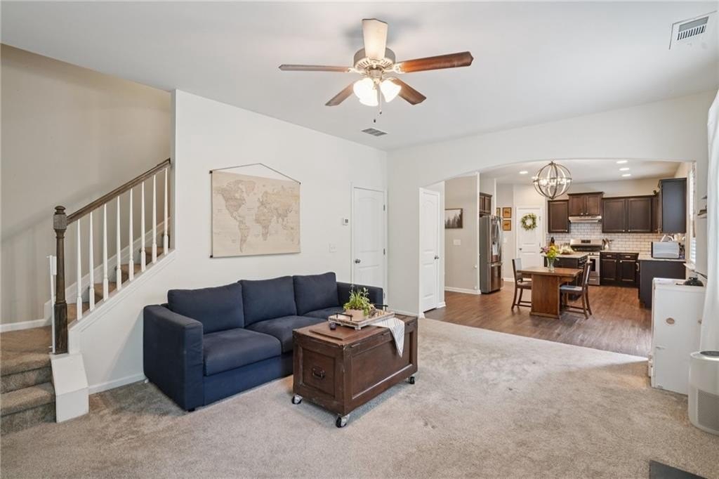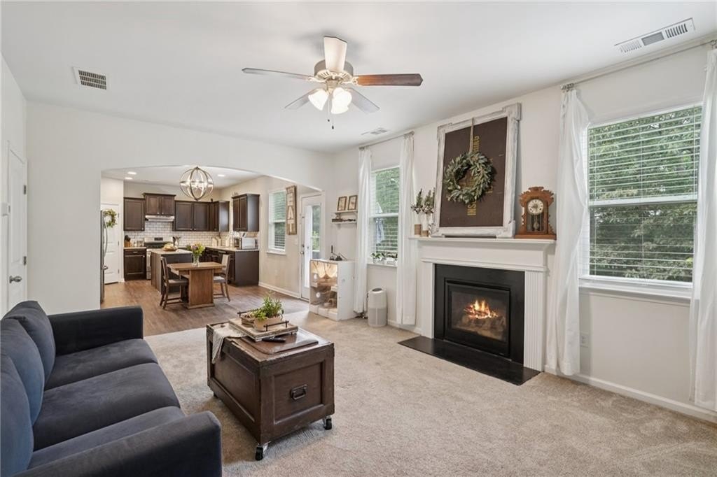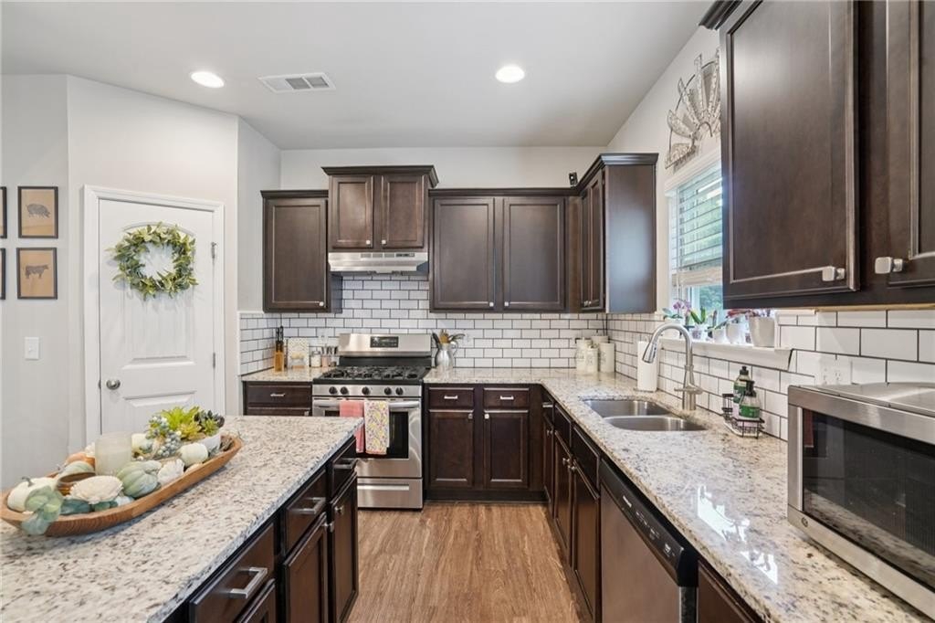 Welcome home to this picturesque 4 Bedroom/2.5 Bath home with inviting rocking chair front porch on quiet, cul-de-sac street. The main level interior of home offers a LVP wood flooring,a formal living room with arched doorway, a formal dining room, a half bath and an open concept kitchen with rich espresso cabinetry, large granite island, stainless steel appliances, subway tile backsplash, walk in pantry and a breakfast area that leads into the spacious family room with fireplace, with access out back to the entertainment deck overlooking the backyard. The upper level features an open loft space perfect for a library or office nook, as well as a large primary suite with tray ceiling, 2 walk in closets and an ensuite with double vanities, a garden tub and separate shower. Completing the upper level are 3 more secondary bedrooms, the 2nd full bath and the laundry room. Terrace level boasts a full and partially finished daylight/walk out basement already stubbed for a bath and ready for expansion- with access out to the covered patio and lush, green backyard space. Do not wait…call to schedule your tour today!!