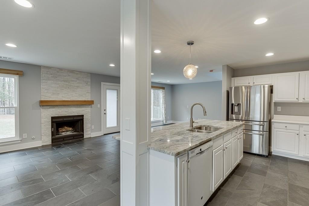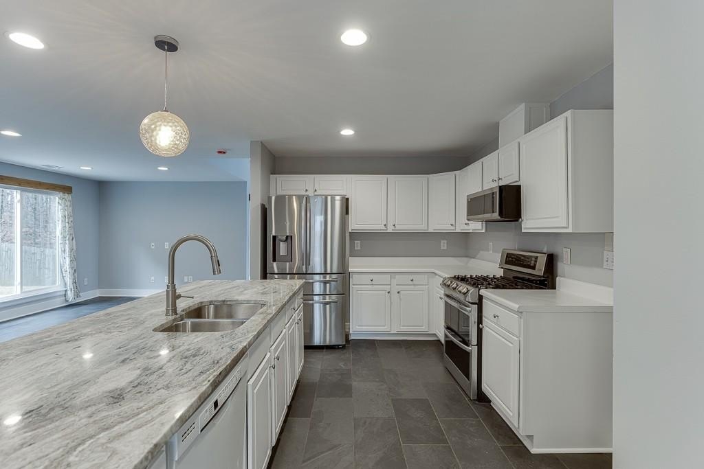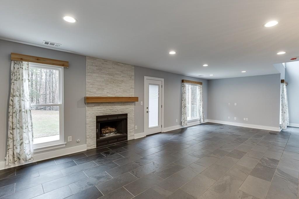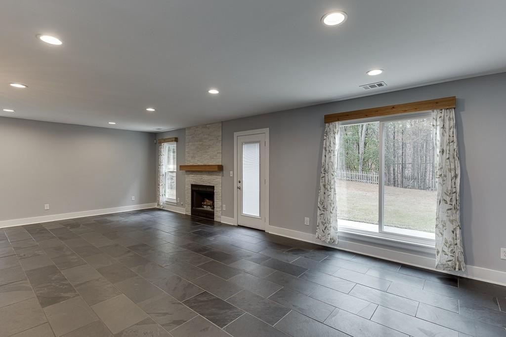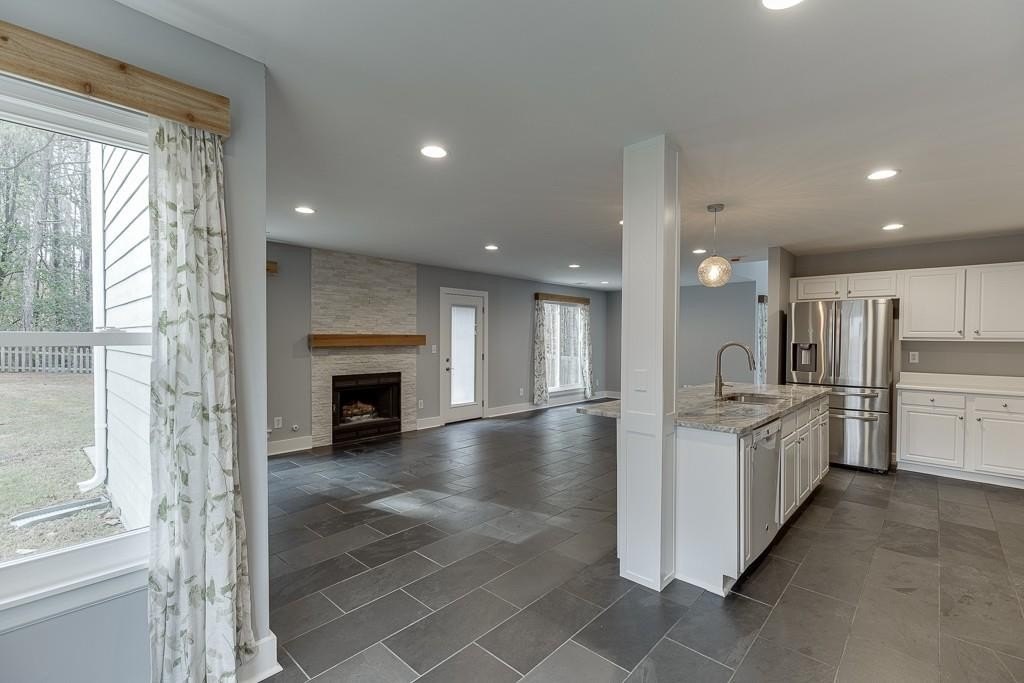 Move-In Ready and Affordable in the North Gwinnett School District! Welcome home to a beautifully updated property that offers incredible value in one of Gwinnett's most desired school districts. Fresh interior and exterior paint, brand-new windows, and beautiful, durable slate flooring throughout the main level create a clean and inviting first impression. The reimagined kitchen is the heart of the home. It has been opened up to overlook the living room, and features a stunning quartz island, newer stainless steel appliances, and modern finishes. The family room is anchored by a contemporary tile fireplace that adds warmth and style. A spacious flex area provides the perfect spot for an office or additional living room, and includes built-in bookshelves and large picture windows that fill the space with natural light. Upstairs, the home continues to shine with comfortable bedrooms and great light throughout. The owner's suite includes a large walk-in closet with a custom shelving system, and an additional separate room that works well as a workout space or home office. Two secondary bedrooms share a convenient Jack-and-Jill bathroom. Outside, you will find one of the largest backyards in the neighborhood. It is flat, fenced, and ideal for play, pets, gardening, or future outdoor living plans. All of this is within walking distance to shops and nature trails, giving you everyday convenience and easy access to the outdoors. This home offers an affordable opportunity in North Gwinnett with the updates buyers want and the space they need. It is truly ready for move-in from day one.