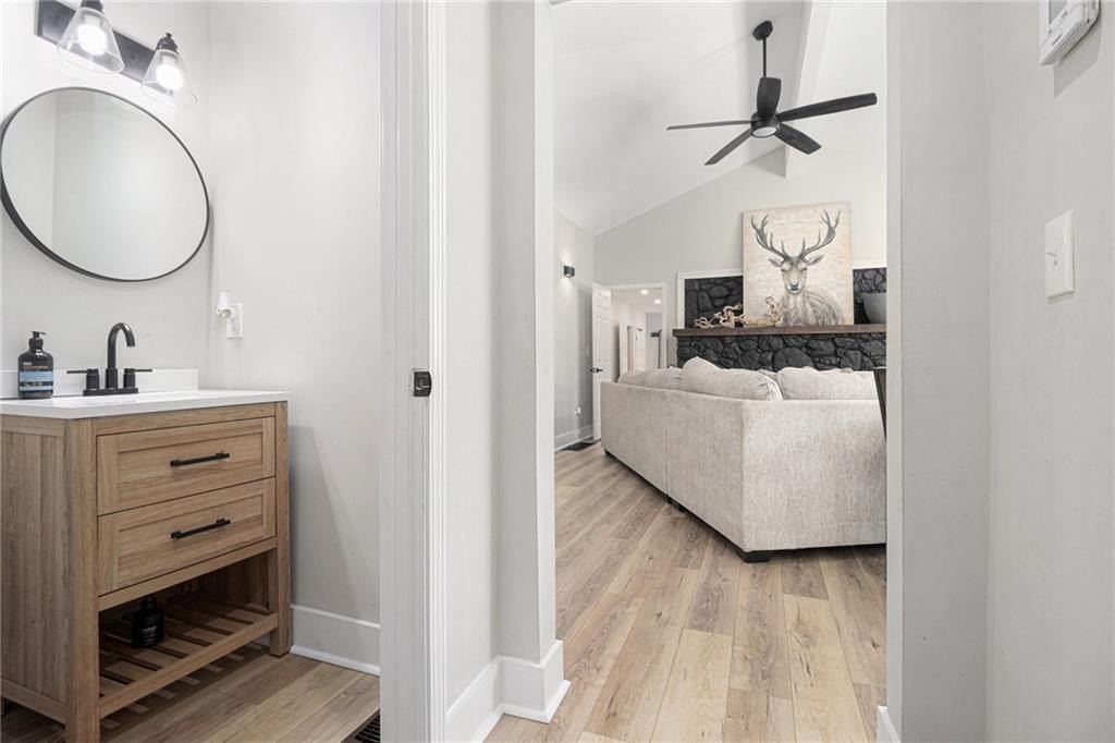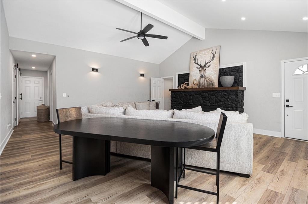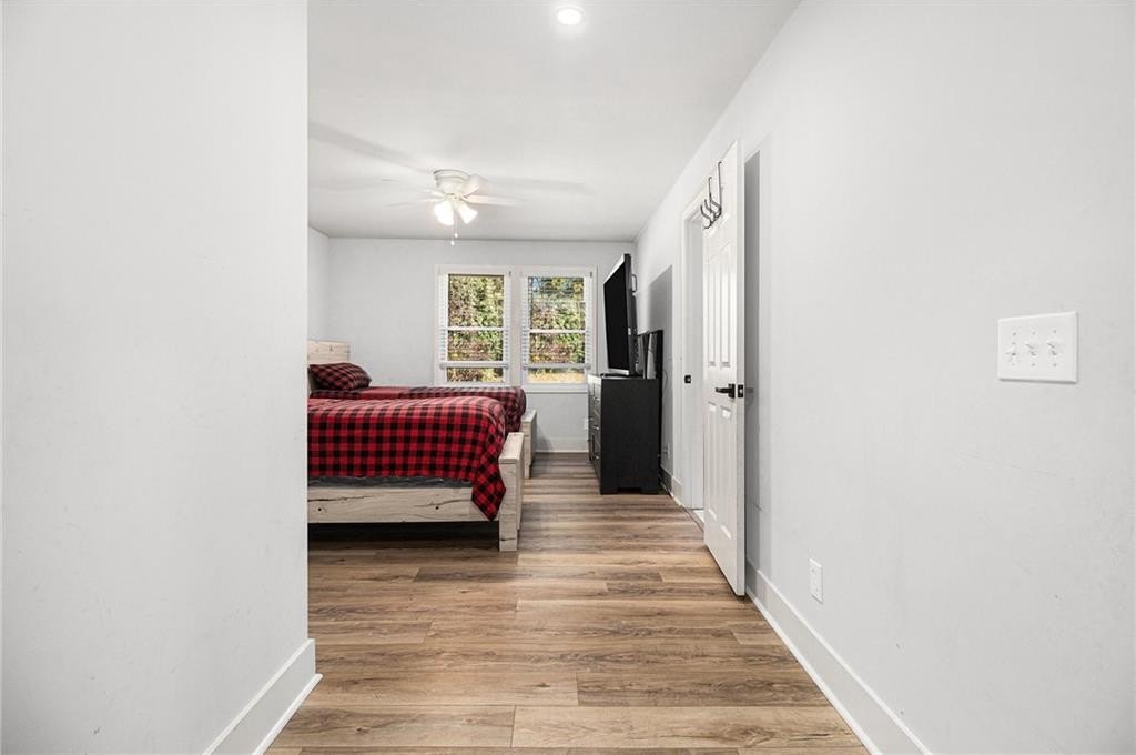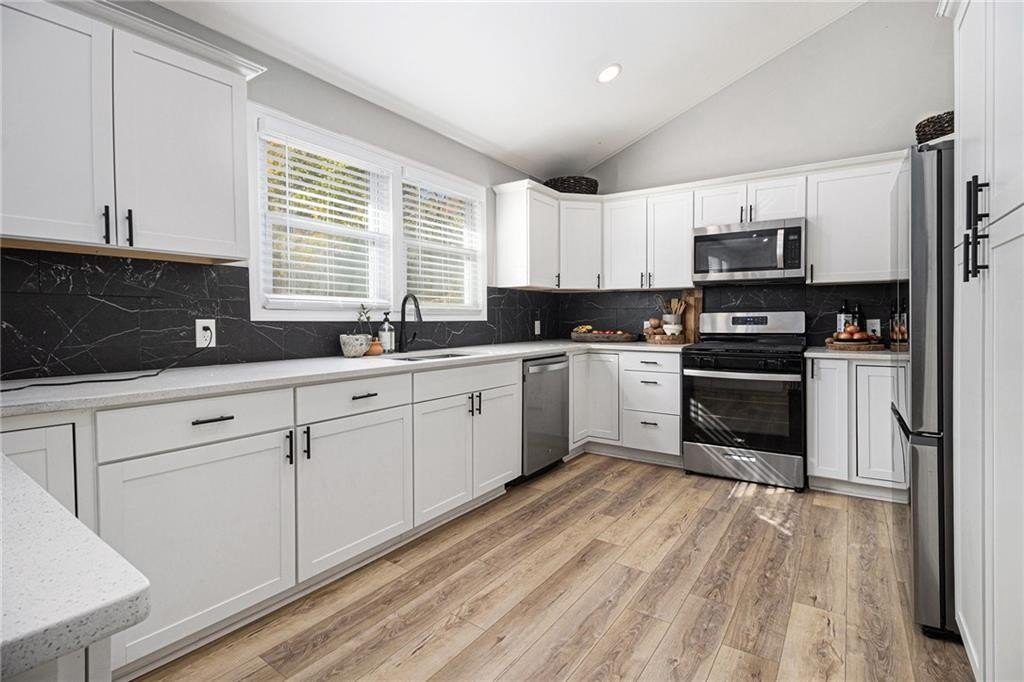 Welcome to 3795 King Edward Trail SW, a completely renovated home nestled in a quiet and desirable Atlanta neighborhood. This home has been completely renovated from the studs up, offering a true like-new living experience. It features soaring vaulted ceilings, sleek quartz countertops, stainless steel appliances, and modern recessed lighting throughout. Every major component has been replaced, including new plumbing, electrical, gas lines, LVP flooring, bathrooms, kitchen, drywall, HVAC system, interior and exterior paint, fireplace, gutters, roof, windows, doors, blinds, porch railing, and deck. This spacious residence offers the perfect blend of comfort, style, and functionality. Step inside to find an inviting open floor plan with abundant natural light that enhances the warm and welcoming atmosphere. The main level features a generous living area with a cozy fireplace, ideal for both relaxing and entertaining. The kitchen is equipped with modern appliances, ample cabinet space, and a breakfast area perfect for casual dining. The primary suite offers a peaceful retreat with a large walk-in closet and a private ensuite bath. Additional bedrooms are well-sized and versatile for guests, family, or home office needs. Outside, the private backyard and deck create an ideal setting for outdoor gatherings and quiet evenings. The backyard provides endless possibilities—perfect for a pool, an ADU or tiny home for additional income, or your own private outdoor retreat. Conveniently located near shopping, dining, parks, and major highways, this home combines suburban tranquility with easy access to all that Atlanta has to offer.