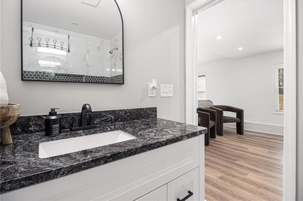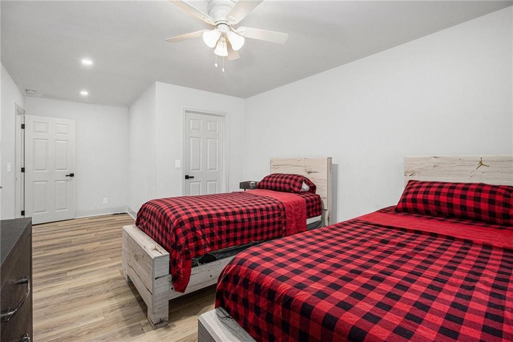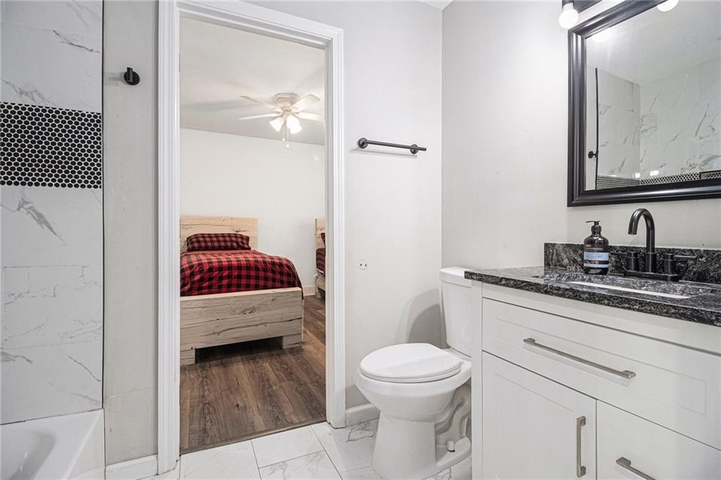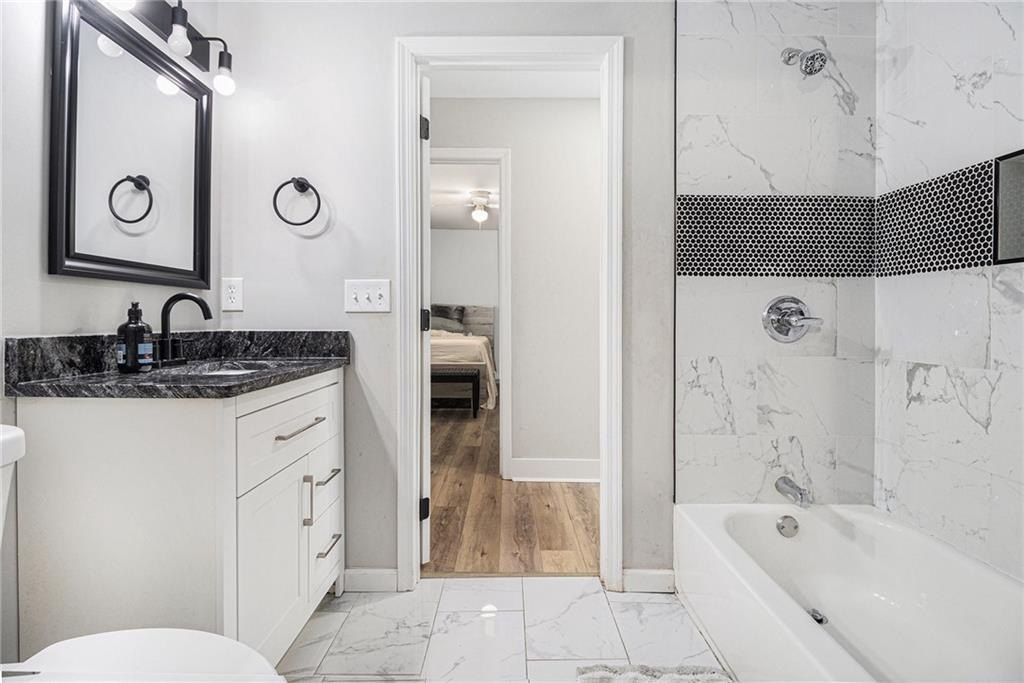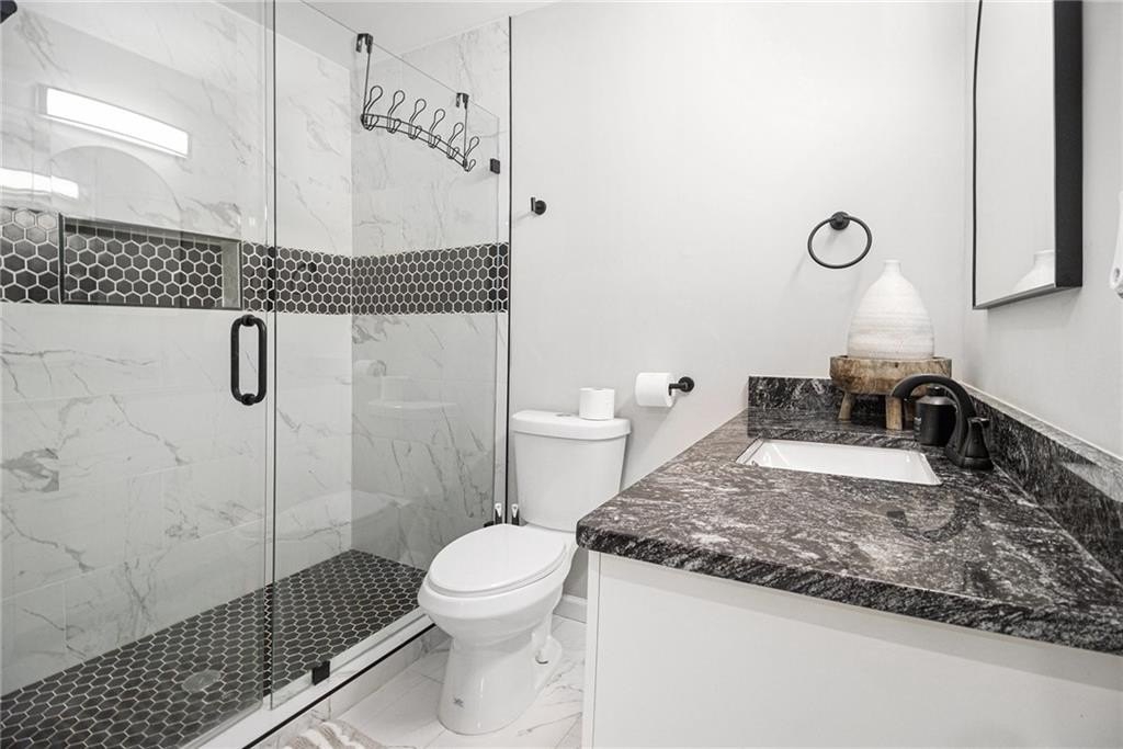 Welcome to 3795 King Edward Trail SW, a completely renovated home nestled in a quiet and desirable Atlanta neighborhood. This home has been completely renovated from the studs up, offering a true like-new living experience. It features soaring vaulted ceilings, sleek quartz countertops, stainless steel appliances, and modern recessed lighting throughout. Every major component has been replaced, including new plumbing, electrical, gas lines, LVP flooring, bathrooms, kitchen, drywall, HVAC system, interior and exterior paint, fireplace, gutters, roof, windows, doors, blinds, porch railing, and deck. This spacious residence offers the perfect blend of comfort, style, and functionality. Step inside to find an inviting open floor plan with abundant natural light that enhances the warm and welcoming atmosphere. The main level features a generous living area with a cozy fireplace, ideal for both relaxing and entertaining. The kitchen is equipped with modern appliances, ample cabinet space, and a breakfast area perfect for casual dining. The primary suite offers a peaceful retreat with a large walk-in closet and a private ensuite bath. Additional bedrooms are well-sized and versatile for guests, family, or home office needs. Outside, the private backyard and deck create an ideal setting for outdoor gatherings and quiet evenings. The backyard provides endless possibilities—perfect for a pool, an ADU or tiny home for additional income, or your own private outdoor retreat. Conveniently located near shopping, dining, parks, and major highways, this home combines suburban tranquility with easy access to all that Atlanta has to offer.