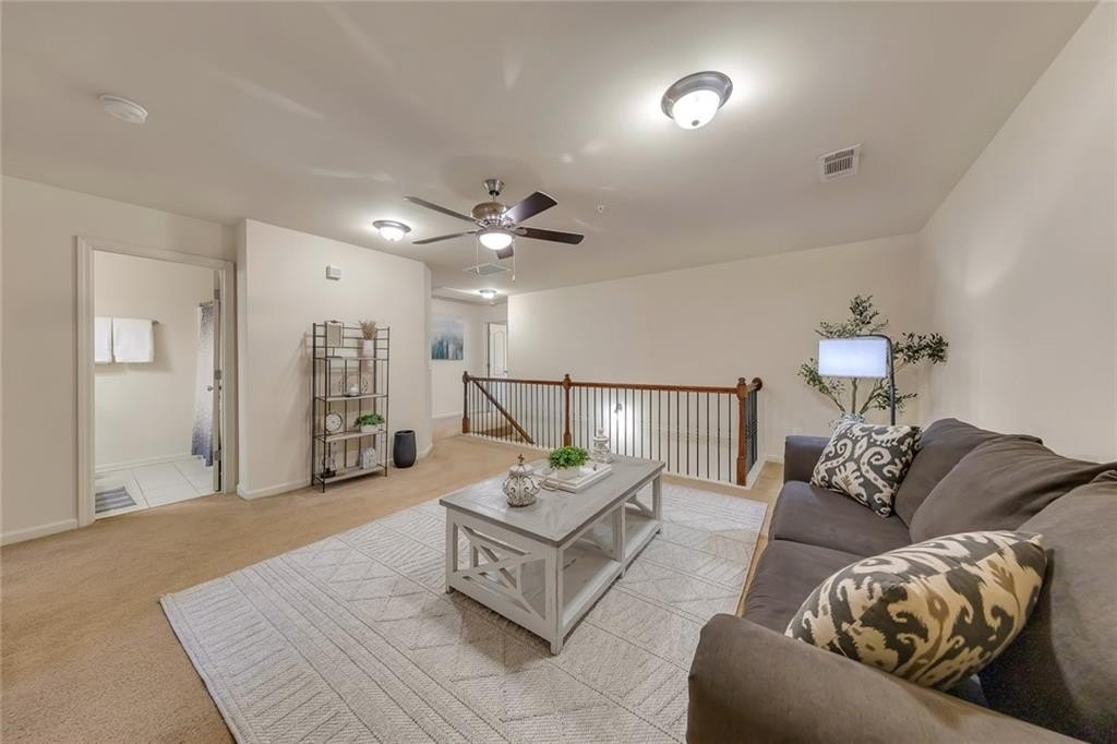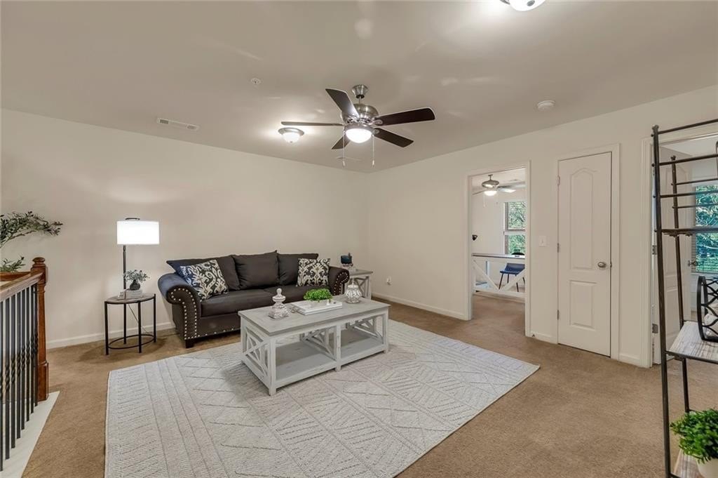 Experience easy living in this beautifully maintained townhome offering nearly 2,000 square feet of stylish and functional space. The open-concept main level features freshly painted interiors and a bright kitchen with granite countertops, a large pantry, and a clear view of the private, low-maintenance backyard—complete with turf grass that stays green year-round, a freshly painted privacy fence, and an oversized patio perfect for relaxing or entertaining. Upstairs, the spacious primary suite includes a generous walk-in closet and spa-like bath. A large loft offers the perfect flex space for a second living area, home office, or playroom. Two additional bedrooms, a full bath, and convenient upstairs laundry complete this level. This home is tucked away in the back of the community for optimal peace and privacy. Located just minutes from The Battery Atlanta, Smyrna Market Village, and with easy access to I-285, this home combines comfort, convenience, and modern living in one of Smyrna’s most desirable locations.