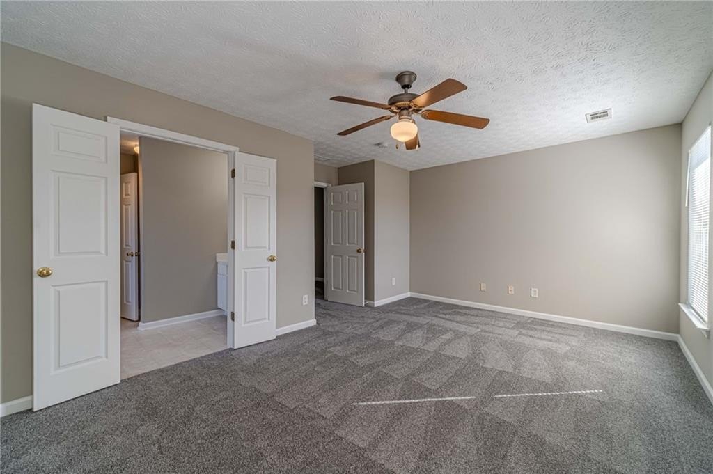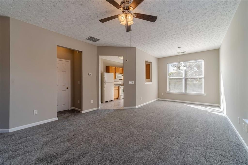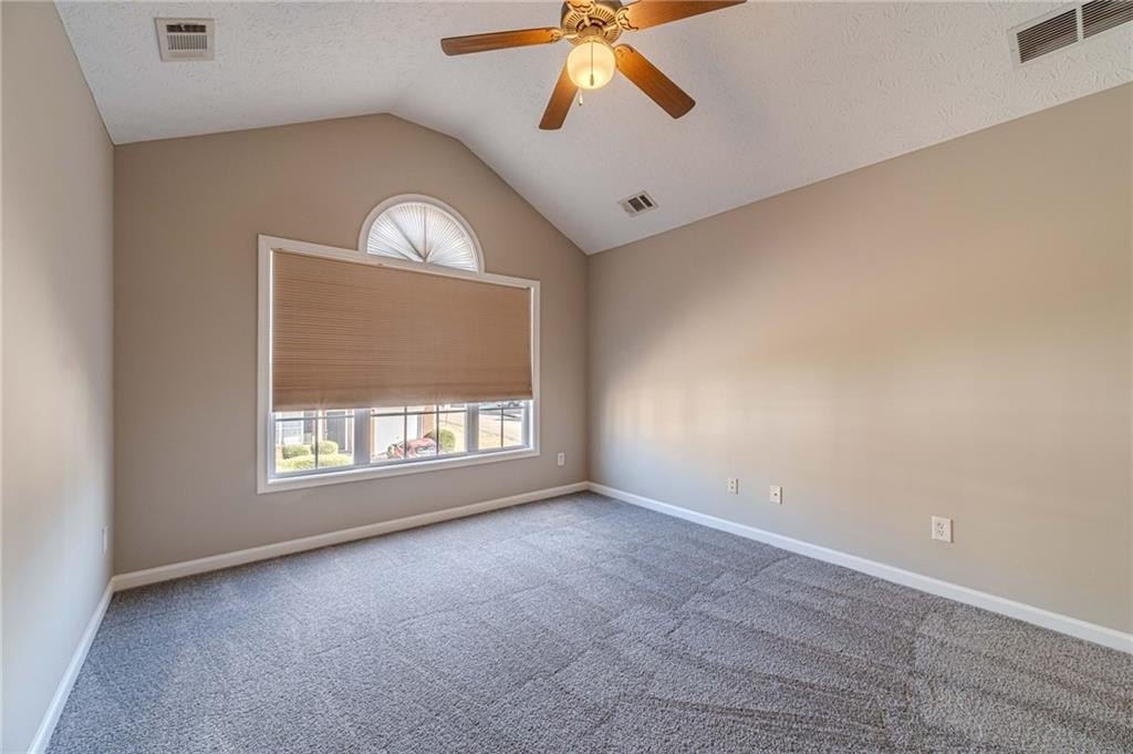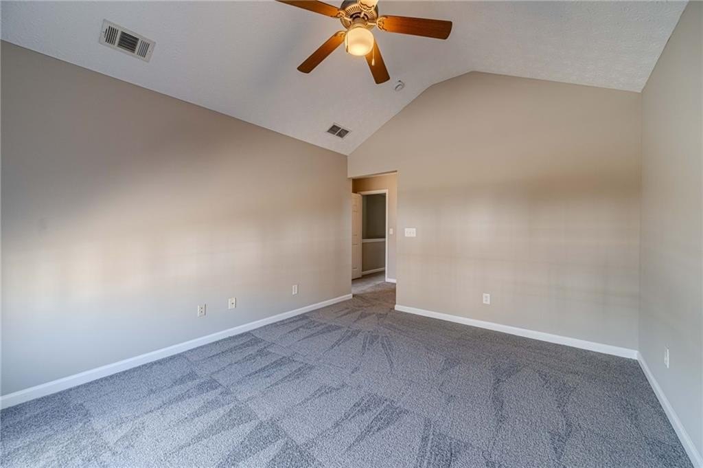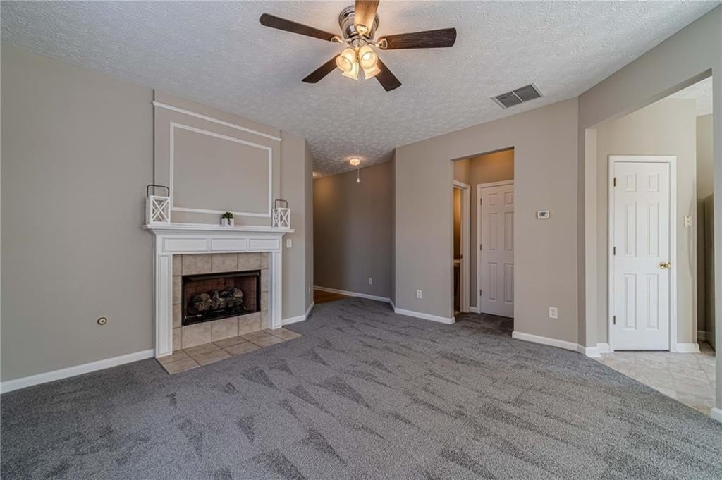 Welcome home to this charming retreat located right across the street from the lake and just steps away from outdoor enjoyment! Beautifully maintained 2 bedroom, 2.5 bath, open concept, end unit townhome. New Paint and New Carpeting! The kitchen offers natural wood-stained cabinets, gas stove, microwave and refrigerator. A half bath is conveniently located on the main level. The family room and dining room are open concept with a cozy fireplace. The main level offers high ceilings and has a walk out to the private and peaceful patio and yard, wonderful for outdoor entertaining or relaxing with a beverage. The upstairs has two oversized primary bedroom suites, (one bedroom has a view of the lake!), each with a private en-suite and wonderful walk-in closets. The laundry area and a large linen closet are in the upstairs hall. A one car garage offers convenience and extra storage. Enjoy lake living and all it has to offer.