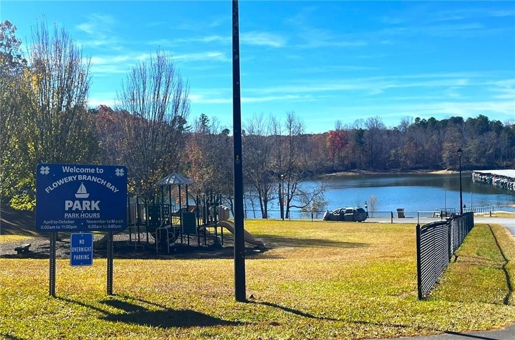This community offers loads of charm and is located just minutes from Old Towne of Flowery Branch with the Farmers Market, Shopping, Dining and lots of activities. The home is across the street from Safe Harbor Hideaway Bay & Marina with convenient boat storage. Walk to wonderful parks, Fish Tales Restaurant and Hideaway Bay Marina!