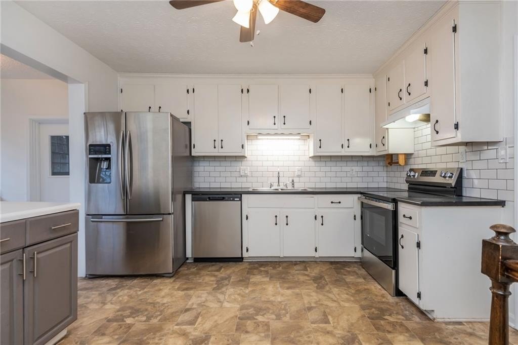 Welcome Home! So much space - indoor and outside in a non HOA neighborhood - great home for first time homebuyer, growing family or investment property as a rental. Home has Brand New Roof, New Carpet, LVP, New Stainless Appliances, Fresh Interior Paint, Newer Water Heater and HVAC that has been serviced regularly. Home has open Living Room with window seat and vaulted ceiling attached to Dining Room - then a few steps up and you have 3 Bedrooms and 2 Full Baths. Kitchen is off Dining Room with Mud Room that includes cabinets and counter leading to 2 Car Garage. A few steps down from Kitchen and you enter Large Family Room with Fireplace leading to Sliding Double Doors to Outside Covered Patio overlooking the Large Private Backyard. Also on this level is Laundry Area with additional access to Backyard, Half Bath and 4th Bedroom. Then as a Bonus, there is an additional level with Finished Rec Room that has so much character - brick and board and batten walls - along with large unfinished Storage Area. Step out back to the big open backyard and so much potential! Large driveway allows for lots of parking. Convenient to Great Schools, Interstate, Peach Pass Access, Shopping, Kennesaw State and more!