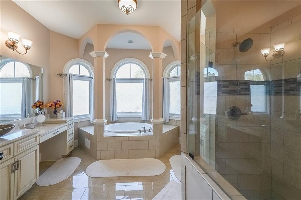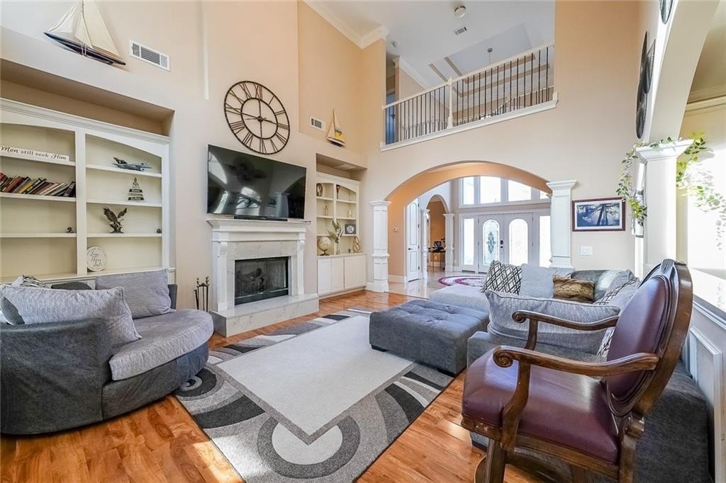Grand Luxury Living on Almost Three Acres in One of Rockdale County’s Most Distinctive Settings. This custom-built estate offers a striking presence with refined modern and contemporary architectural details throughout. The grand two-story foyer sets the tone the moment you enter, opening into massive living spaces with vaulted ceilings and an abundance of natural lighting throughout. The great room blends elegance and comfort, flowing seamlessly into a well-appointed kitchen with a thoughtful breakfast nook that connects directly to the expansive exterior sunroom. The main-level primary suite serves as a private retreat with two walk-in closets and serene views across the property. A dedicated home theater adds an additional layer of luxury for entertainment at home. Outdoor living is elevated by a custom-built gas grill, gazebo, and a private landscaped path, offering a peaceful way to enjoy nature and invites peaceful moments without ever leaving home. With its scale, craftsmanship, and exceptional acreage, this residence offers a rare opportunity to experience luxury living at its finest.