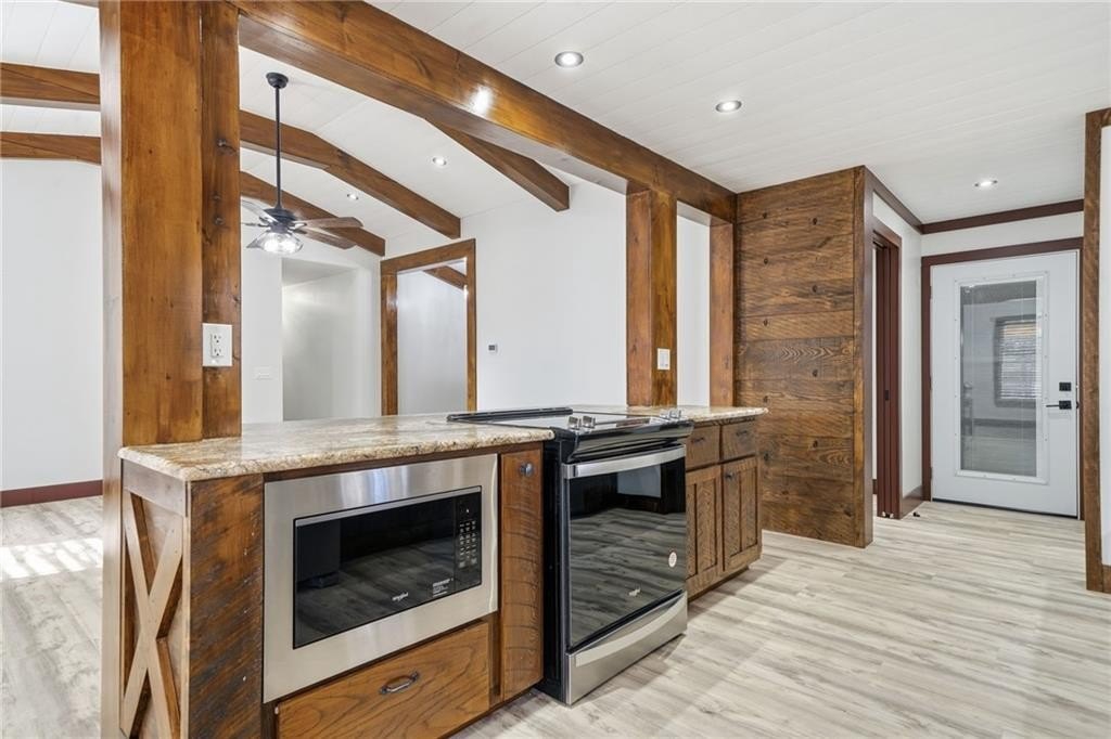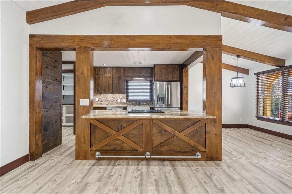 This beautifully renovated home in the desirable Arbor Hills community has been completely transformed from top to bottom, offering the perfect blend of modern style, thoughtful upgrades, and move-in-ready comfort you will not find in another Arbor Hills home! Every room has been refreshed, redesigned, and updated, creating a bright, cohesive interior that feels like a brand-new home. Step inside to an inviting open-concept living space accented with wide-plank luxury vinyl flooring, updated trim, and new lighting throughout. Previously darker, dated colors have been replaced with a fresh, neutral paint palette that enhances natural light and highlights the home’s spacious layout. Updated ceiling fans, fixtures, and hardware complete the clean, modern aesthetic. The kitchen has undergone a full renovation, transforming it from its original closed-in layout with older cabinetry and appliances into a stunning, modern culinary space. Enjoy new cabinets, updated countertops, stainless steel appliances, a stylish tile backsplash, and warm wood accents that highlight the home’s open-concept design. The kitchen flows seamlessly into the dining area and living room, making the space ideal for both everyday living and entertaining. The primary suite has been completely refreshed with new flooring, modern lighting, and an updated en-suite bathroom featuring a new vanity, updated tile flooring, and an improved walk-in shower. Secondary bedrooms echo the same clean, comfortable updates with new flooring, fresh paint, and updated fixtures. Both bathrooms have been modernized with new finishes, refreshed tile, updated hardware, and improved functionality. Additional interior improvements include updated laundry and pantry areas, refreshed closets, and new interior hardware. Every detail—large and small—has been addressed to maximize comfort, style, and ease of living. Outside, the transformation continues. The home features a revitalized deck, refreshed landscaping, and a spacious fenced backyard that offers privacy and plenty of usable outdoor space. A large outbuilding offers additional storage or workshop potential. Located just minutes from Jasper shopping, dining, and schools, this home provides easy access to local amenities while offering the quiet, established feel that Arbor Hills is known for. With its extensive updates and modern finishes, this home delivers exceptional value and a true move-in-ready experience in one of Pickens County’s most convenient locations.