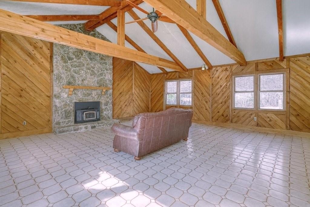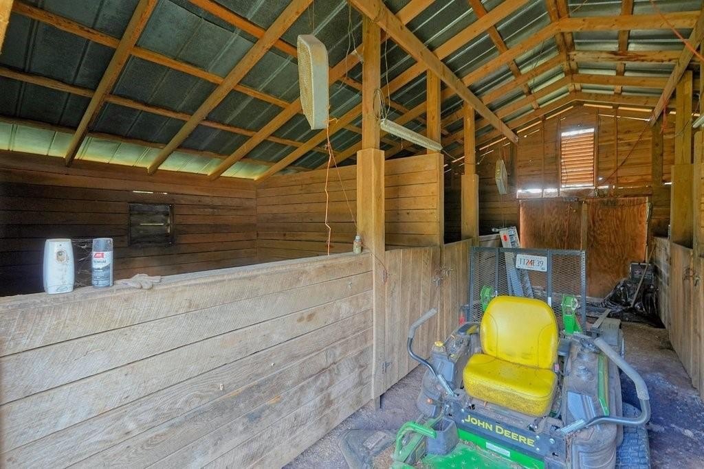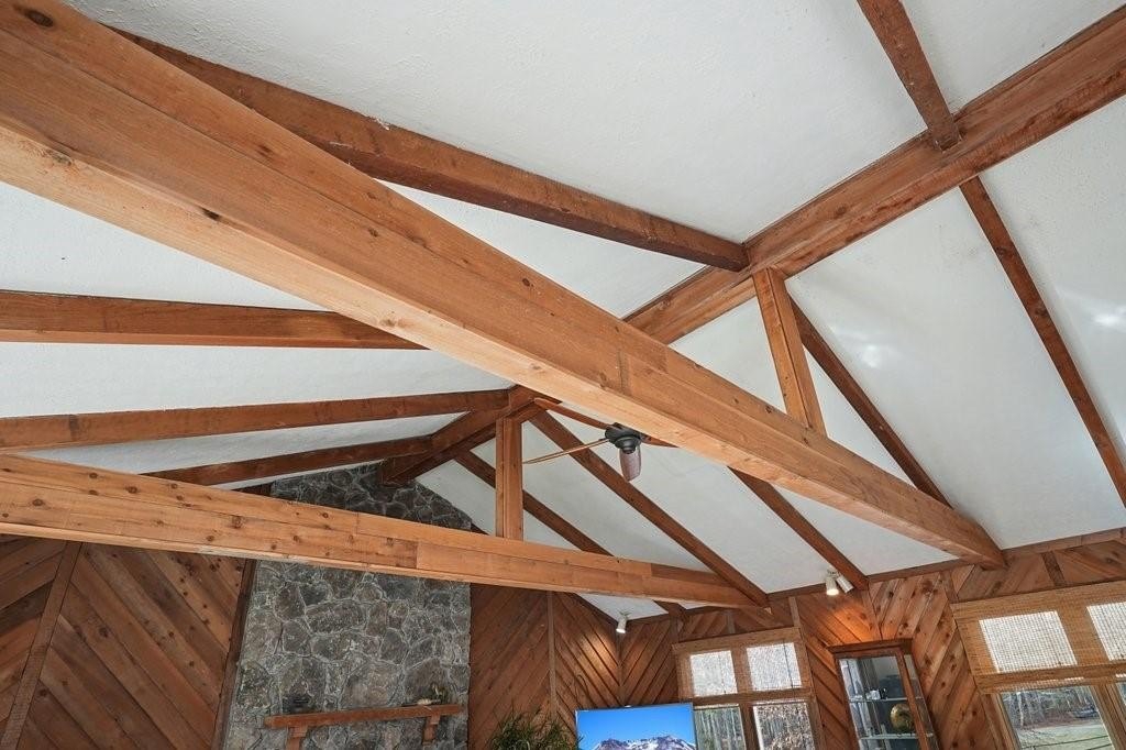 Massive bonus room with cathedral ceilings & exposed wood beams – perfect for a tack lounge, gym, or entertainment space