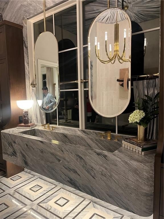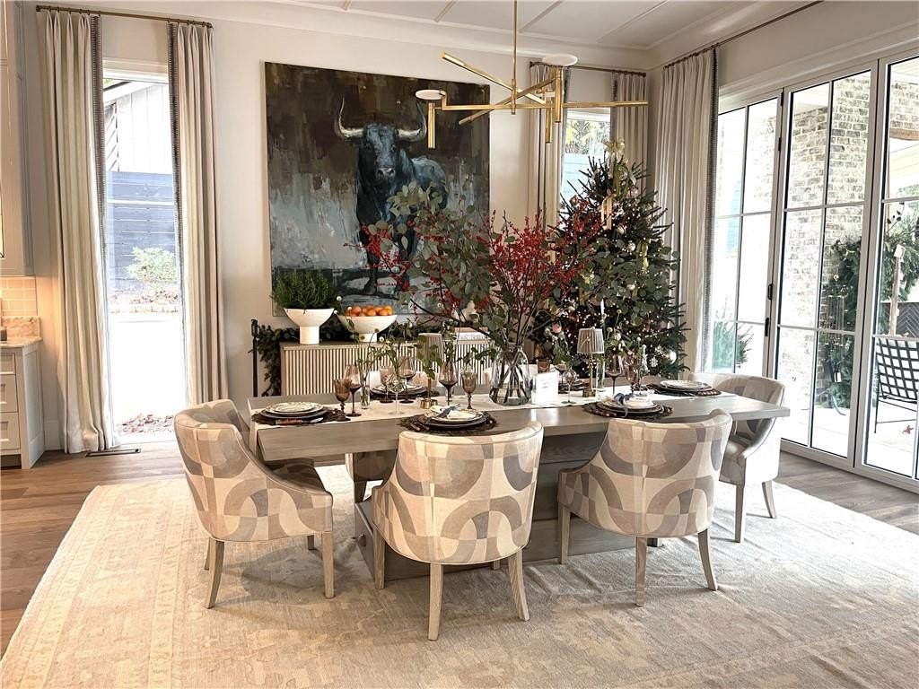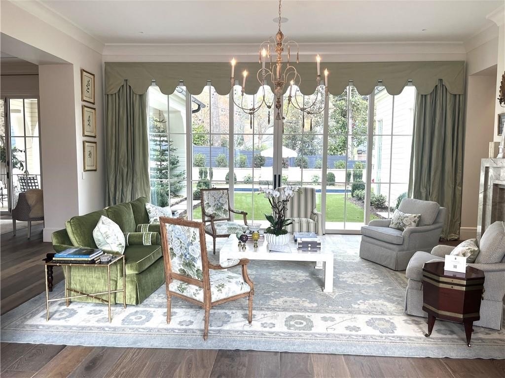 This home is the 2025 Atlanta Homes and Lifestyles Holiday Show house and has been built with every special feature the builder could add. From the 12' ceilings, to a true gourmet Kitchen complete with a Quartzite island and sink with a hidden charging surface, a Francois vent hood, the latest Wolfe 48" range to a custom Scullery featuring a open brass lighted shelving, an extra steam oven, built in coffee maker, a brass sink, extra dishwasher and refrigeration and so much more. The massive Keeping room opens with accordion doors to a beautiful covered porch with fireplace overlooking the cocktail salt water pool. A main level master suite has the most special Master bath with a solid stone double sink, exquisite tile, a steam shower, designer tub and more. The home features Italian closet systems throughout and fabulous French oak flooring. The Powder room is truly unique with a wall and the sink & vanity covered in a backlit marble for a dramatic look. Upstairs features 10 ' ceilings, 4 spacious bedrooms, each with a custom ensuite bath and marble tile flooring. The upstairs multi-purpose room with its wall of windows can be a perfect casual gathering area, an office, or play area depending on your family's needs. The lower level lives up to the main level finishes with an oversized bar island with a wall of lighted shelves, a dramatic marble backsplash and counters. You'll also find a Spa with a Sauna, a Cold Plunge and workout area plus a Media/Golf Simulator room and full bath. The backyard is a secluded private level spot to retreat and relax in. Additional features include two laundry rooms, a 3 car garage, a Billiard area and multiple high detail interest ceilings.