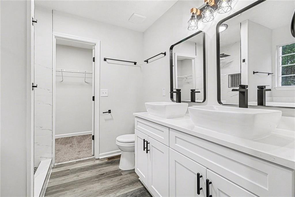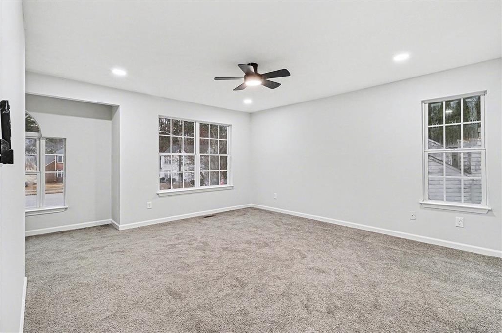 Completely renovated and move-in ready! This spacious 4BR/2.5BA home features an open-concept main level with a brand-new open kitchen, new flooring throughout, fresh interior and exterior paint, updated fixtures, and a beautiful modern feel. The large primary suite offers a rare double-room layout perfect for a sitting area or office. Two additional bedrooms are upstairs, plus a finished basement with a bonus room that can function as a 4th bedroom. Enjoy a new porch, new fencing, and a huge private lot at the end of a quiet cul-de-sac. Located minutes from the airport, schools, shopping, and major highways for easy commuting. Renovated, spacious, and versatile — this one checks all the boxes.
