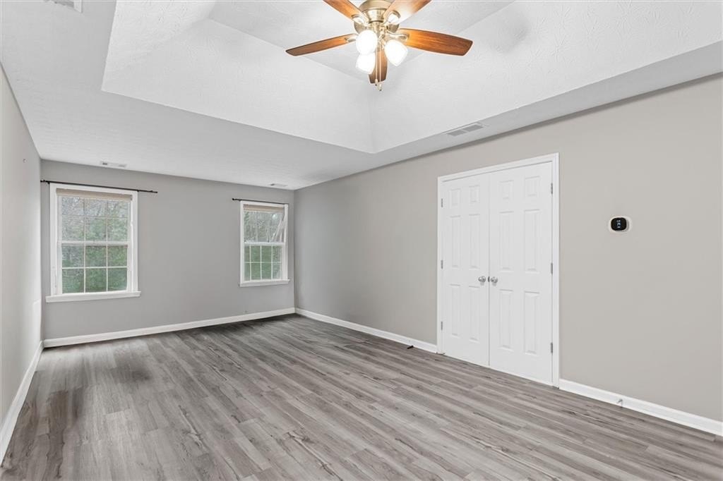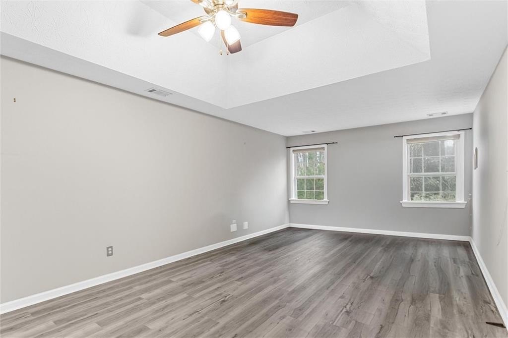 Prepare to be impressed by this stunning and impeccably maintained 2-story home featuring 4 spacious bedrooms and 2.5 baths, nestled in a highly sought-after community offering premium amenities including swim, tennis, a kids playground, and a clubhouse ideal for gatherings and entertainment. Filled with an abundance of natural light, this beautifully updated residence showcases fresh interior paint, new hardwood floors throughout, and luxurious dual rolling shade blinds on every window for added elegance and privacy. The main level welcomes you with a private office, a stylish half bath, and a warm, inviting kitchen equipped with quality cabinetry, a two-bowl stainless steel sink, and a practical layout designed for everyday comfort. The open flow continues into the large dining room and the spacious family room, highlighted by a cozy gas-starter masonry fireplace. The bright breakfast area seamlessly connects to the family room, and all three spaces offer picturesque views of the serene, private backyard, creating a light-filled, inviting setting perfect for both relaxation and entertaining.Upstairs, the expansive primary suite provides a true retreat with its generous walk-in closet and spa-like ensuite bathroom featuring a quality vanity, a separate soaking tub, and a standalone shower. Three additional well-sized bedrooms, each offering excellent privacy and ample closet space, share a beautifully appointed full bathroom with dual vanities. The convenience of a large upstairs laundry room enhances ease and efficiency in daily routines. Step outside to enjoy the beautifully landscaped, private backyard, ideal for morning coffee, gardening, or hosting outdoor gatherings. Perfectly located near top-rated schools, shopping, public transportation, and major highways, this exceptional home blends comfort, style, and unmatched convenience.This one is truly move-in ready! Schedule your showing today before this beautiful home is gone!