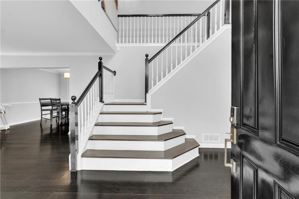 Welcome to this beautifully maintained 4-bedroom, 3.5-bath home in the sought-after River Colony swim/tennis community. Enter through a dramatic two-story foyer with a grand staircase and modern lighting, flanked by elegant formal living and dining rooms. Gleaming hardwood floors flow throughout the main level and into the finished basement. The main floor also offers a convenient half bath and a laundry room. The cozy family room with a fireplace opens to an updated kitchen featuring stainless steel appliances (including a wine cooler) and a sunny bay-window breakfast nook. Step out onto the spacious deck overlooking a fully fenced, level, private backyard – perfect for play or entertaining.