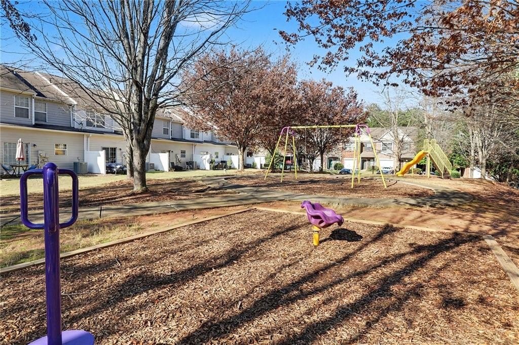 Welcome to this well-maintained two-story townhouse in the gated Heritage Park community of Kennesaw. Built in 2005, this home offers two bedrooms, two full baths, and one half bath across 1,595 square feet, with a functional layout designed for comfort and convenience. The main level features an open-concept living and dining area, along with a bright kitchen equipped with a pantry, and included appliances. Upstairs, both bedrooms feature private full baths, including a primary suite with a soaking tub, separate shower, and dual vanities. Additional features include central air with zoned controls, an attached one-car garage, double-pane windows, and wood/carpet flooring. Community amenities include a swimming pool, playground, and controlled gated access. Conveniently located, it is just minutes from I-75, I-575, KSU, Town Center Mall, shopping, entertainment, and great dining options.