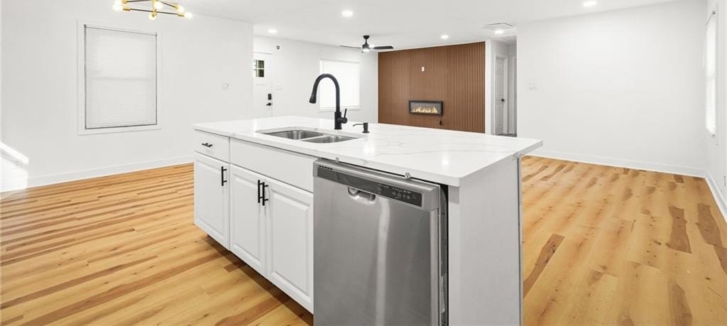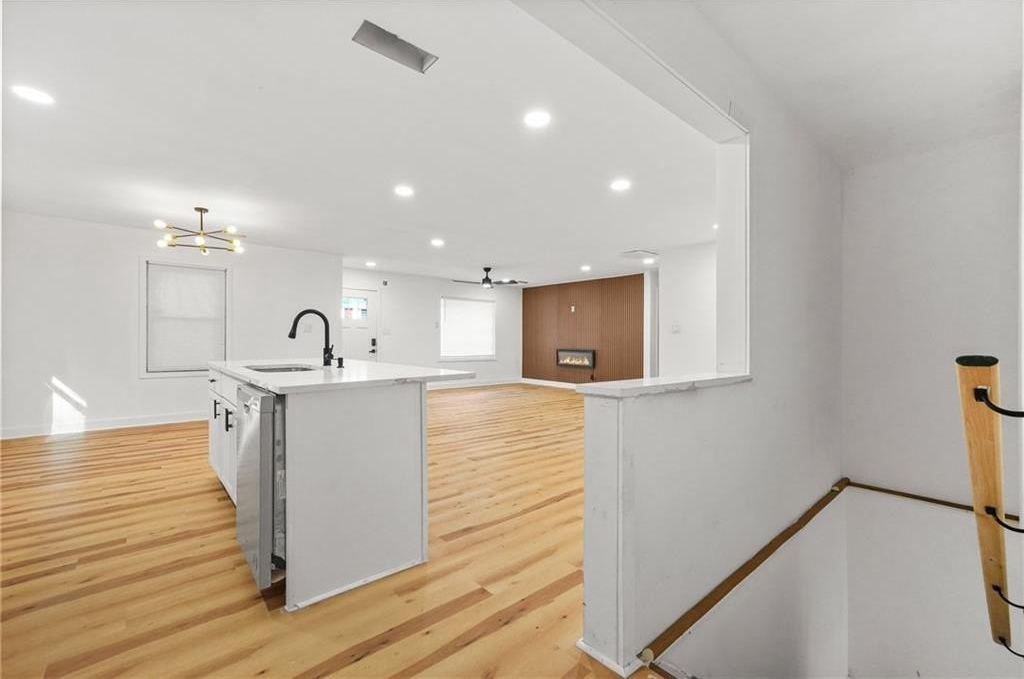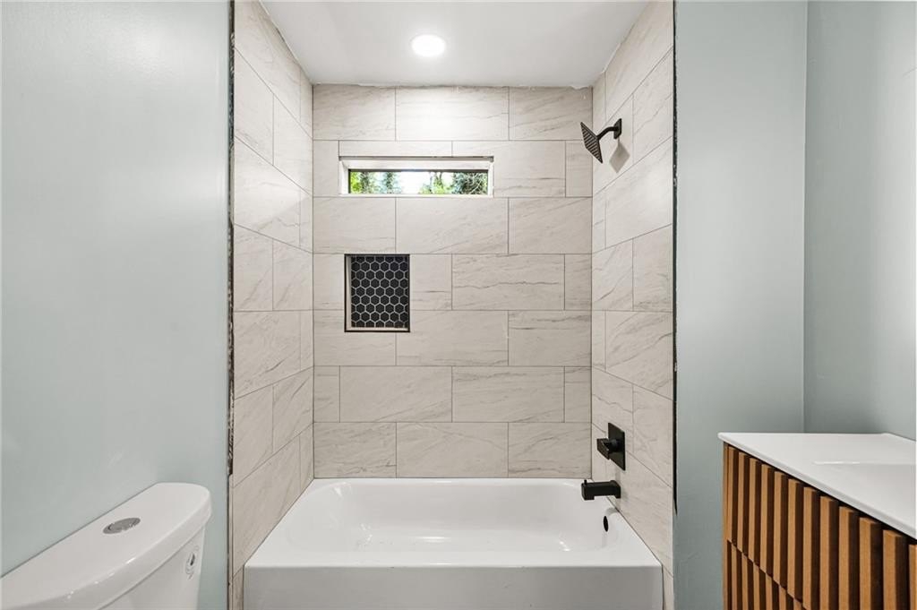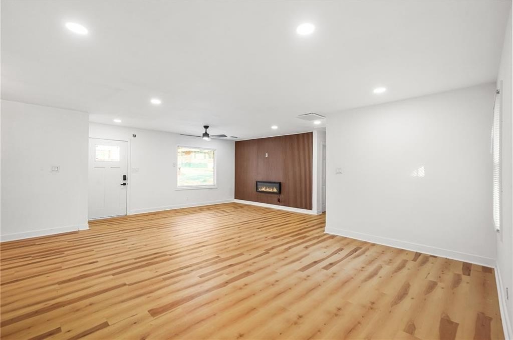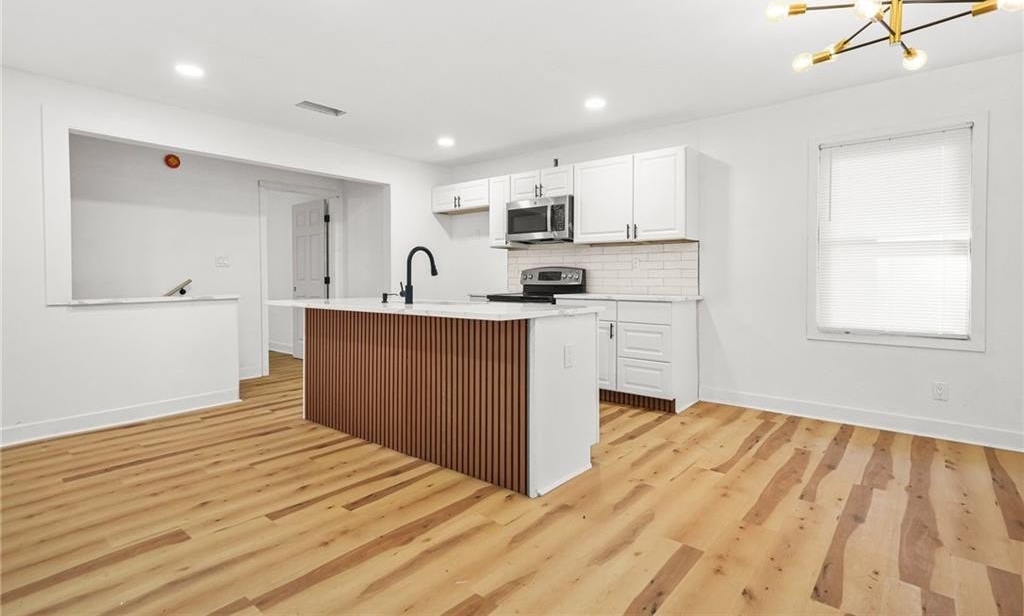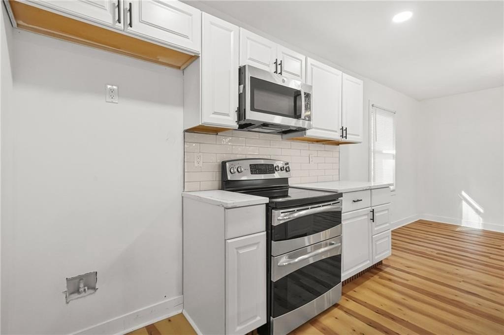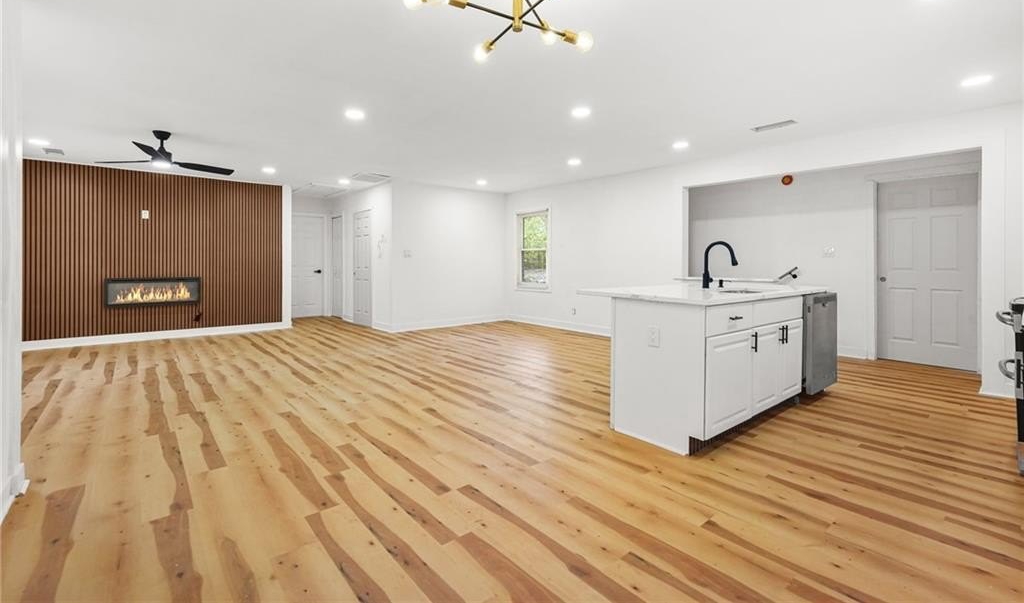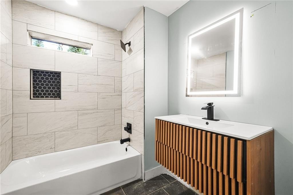 Welcome to 766 Pegg Rd SW! A fully renovated 3-bedroom, 2-bath ranch with a finished basement in the heart of Atlanta. This beautiful home features luxury vinyl flooring and recessed lighting throughout, creating a bright and modern atmosphere from the moment you walk in. The open-concept layout offers a spacious living area highlighted by a custom wood-slat accent wall and sleek electric fireplace, perfect for relaxing or entertaining. The kitchen is thoughtfully designed with white cabinetry, quartz countertops, stainless steel appliances, a stylish island, and contemporary lighting. The split bedroom plan provides privacy, with the owner’s suite offering two separate closets and an upgraded en-suite bath featuring tile flooring, a fully tiled standing shower, and modern finishes. The secondary bedrooms are generously sized and share a beautifully updated bathroom with a tiled shower/tub combo, tile flooring, and designer touches. The open, finished basement offers incredible flexibility, ideal for a media room, home gym, office, or additional living space. Outside, enjoy a spacious front and back yard, along with an extended driveway that accommodates multiple cars. Conveniently located near major highways including I-75, I-85, and I-285, this home provides easy access to downtown Atlanta, Hartsfield-Jackson Airport, Lakewood Amphitheatre, Tyler Perry Studios, the Porsche Experience Center, parks, trails, shopping, and more. Whether you're a homeowner looking for a move-in ready property or an investor seeking a strong rental opportunity, this renovated gem offers exceptional value and modern comfort in a growing community.