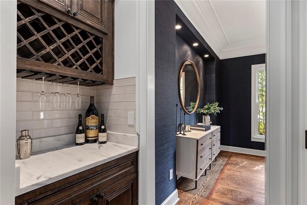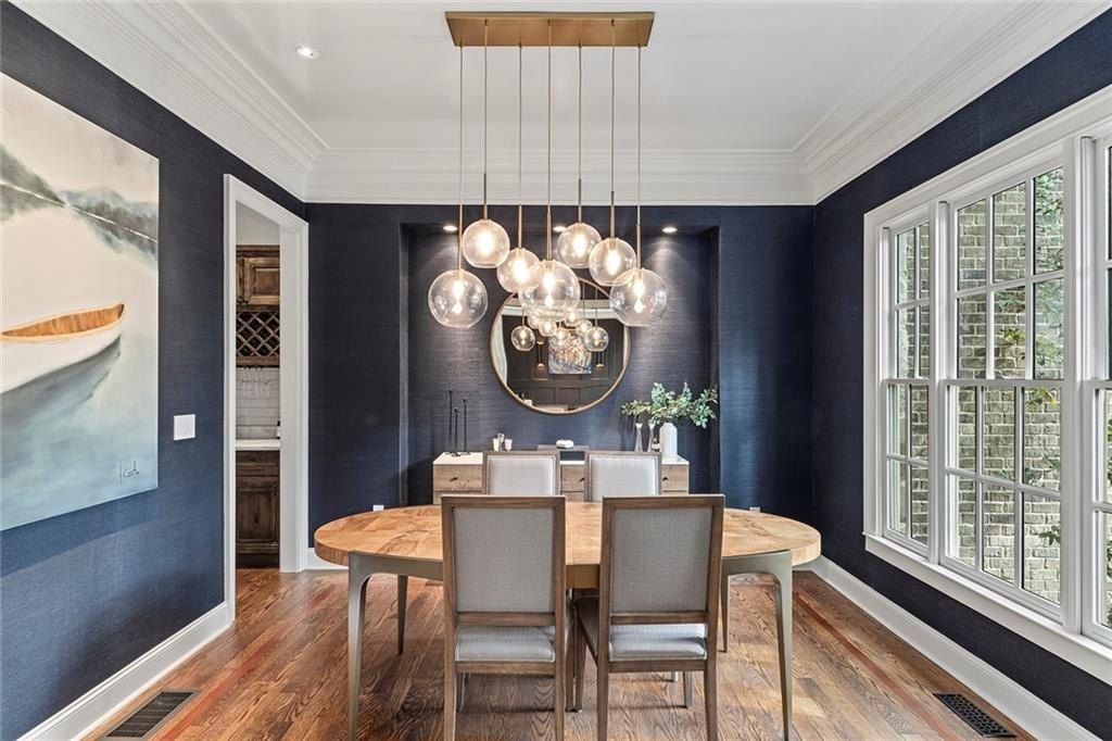 Four sided executive brick home in the heart of High Point, Sandy Springs, ITP, that delivers space, style and all the right rooms with 6 bedrooms, 5 bathrooms and 3 finished levels of living space. The main level welcomes you with a gracious two story foyer, hardwood floors and generous formal living and dining rooms that flow into an updated kitchen with stone counters, large island and a walk in pantry. The vaulted fireside family room with a wall of windows overlooks the backyard and feels like the true center of the home. A guest bedroom and full bath on the main level provide a comfortable space for visitors, in laws or a play room.