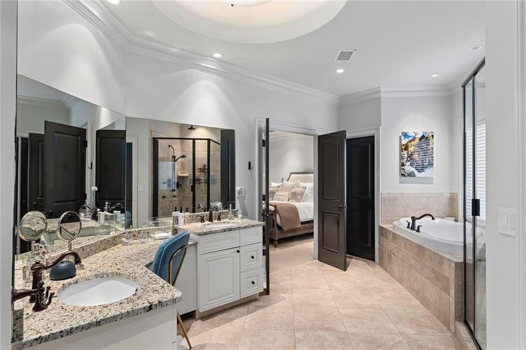Upstairs you will find an expansive primary suite with sitting area, spa like bath with separate soaking tub and shower, and a walk in closet, along with spacious 3 secondary bedrooms and well appointed bathrooms and a bonus room.