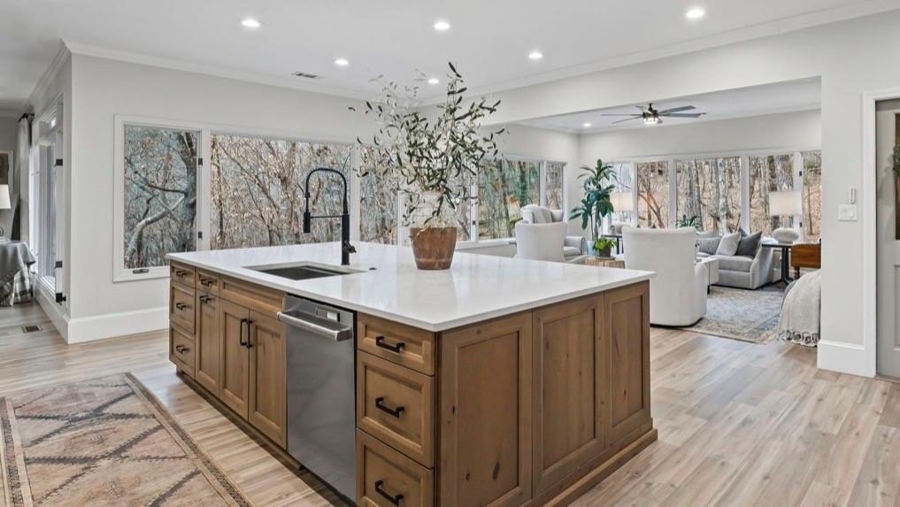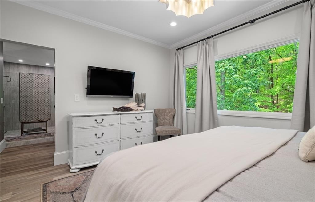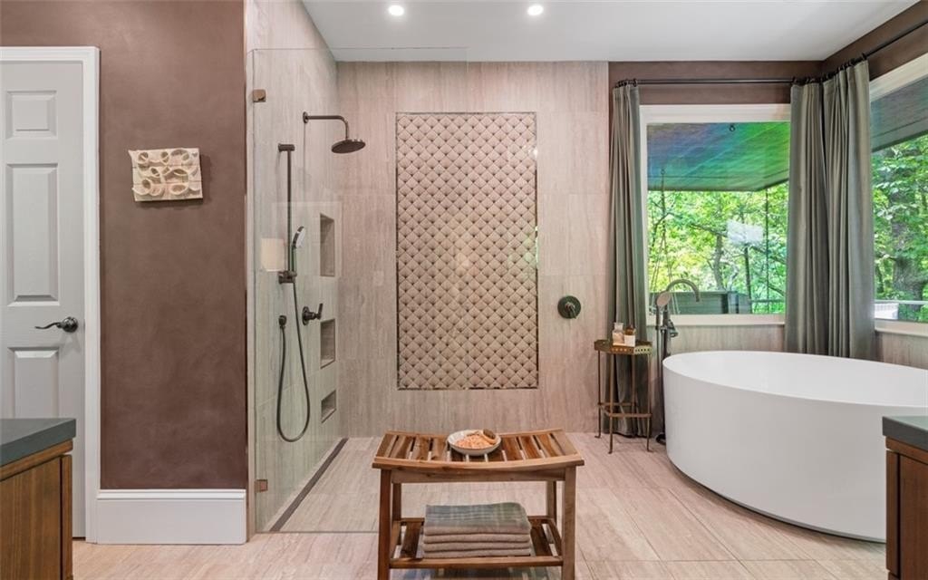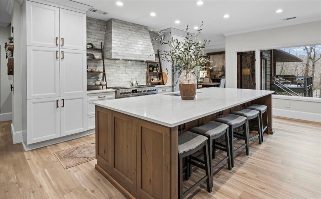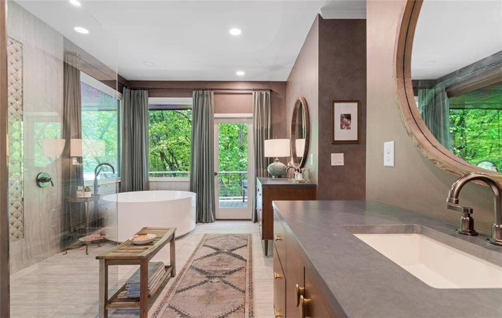 This exceptional mountain estate is a true architectural masterpiece, offering seasonal mountain views and a tranquil setting beside a bubbling creek. Inspired by a Frank Lloyd Wright train station, the home has been thoughtfully reimagined for modern luxury while preserving its iconic design influence. Though impressively expansive, the moment you walk inside you're met with a sense of warmth, comfort, and understated elegance. At the heart of the home, a stunning chef's kitchen awaits-featuring a Fulgor Milano gas range, dual pantries, a massive island, dedicated prep station, and a custom coffee bar. There is truly nothing else like it in Big Canoe. Bathed in natural light, the entire main level is designed to blur the boundary between indoors and out, inviting the surrounding forest and Georgia mountain scenery to become part of your everyday living experience. The primary suite is a retreat unto itself, complete with a private keeping room and a spa-inspired ensuite that feels like your own personal sanctuary. Enjoy a Japanese soaking tub, a secluded deck, and even an outdoor fireplace-all designed to offer complete relaxation in nature. Guests will appreciate the private captain's quarters as well as an entire terrace-level wing, thoughtfully appointed with a media room, additional bedrooms, and exceptional entertaining space. Set amid rolling hills and framed by two gentle creeks, the property offers privacy, serenity, and room to breathe. Nestled within the sought-after community of Big Canoe-renowned for its lakes, waterfalls, miles of trails, golf, tennis, beach club, clubhouse, and more-this remarkable home captures the perfect blend of luxury mountain living and timeless natural beauty.