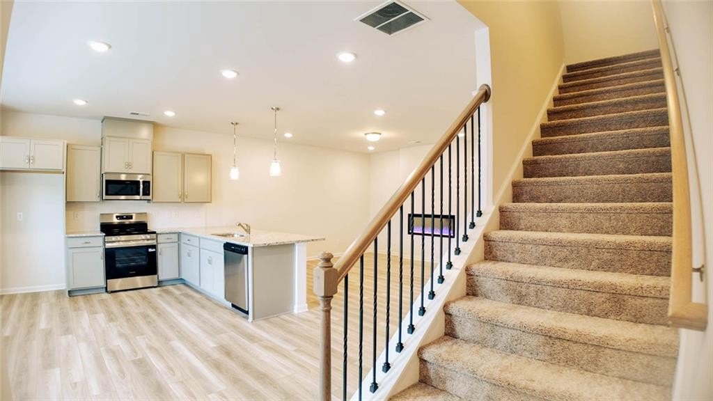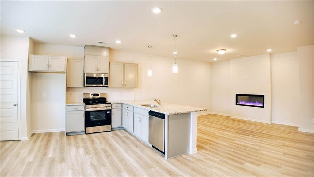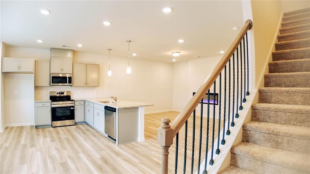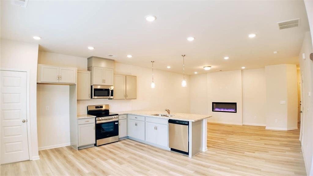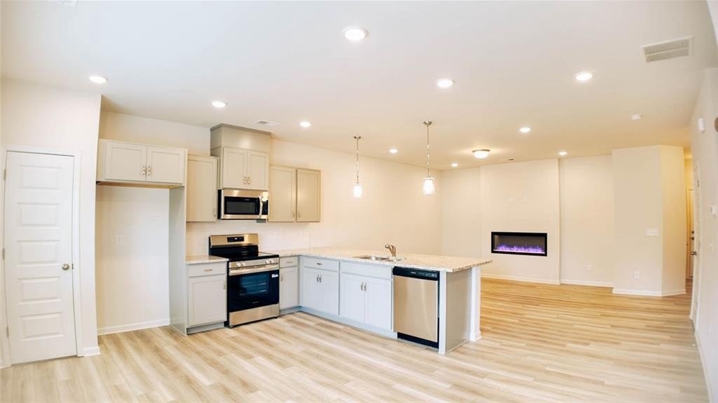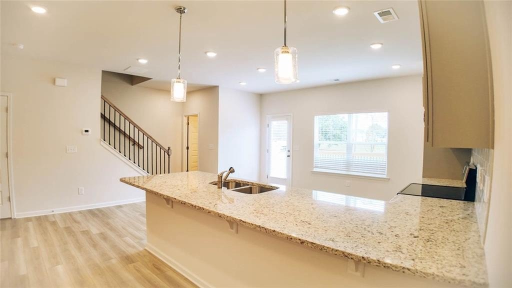 Move In Ready!!! The Maddux II floorplan located in Smith Douglas Homes Franklin Manor community. EXTRA Special incentives available with use of preferred lender on this home. Location, Location, Location!!! Step into the Maddux II townhome; where smart design, modern style, and everyday comfort all come together. The main level features luxury vinyl plank flooring, an open kitchen with granite countertops and large peninsula suitable for bar seating, upgraded cabinetry, breakfast area dining, and living area that flows effortlessly to the patio deck, giving you the perfect setup for relaxing at home or hosting friends. The cozy fireside family room connects seamlessly to the kitchen, creating a true gathering space where everyone feels included. A wide staircase with iron rails leads to your private retreat; the owner’s suite comes complete with its own en-suite bath, separate water closet, and a generous walk-in closet. Two additional bedrooms, a full hall bath, and a convenient second floor laundry room keep everything running smoothly and add to the easy living feel of this beautifully planned home. Call agent for appt. Tour anytime with NTER NOW access.