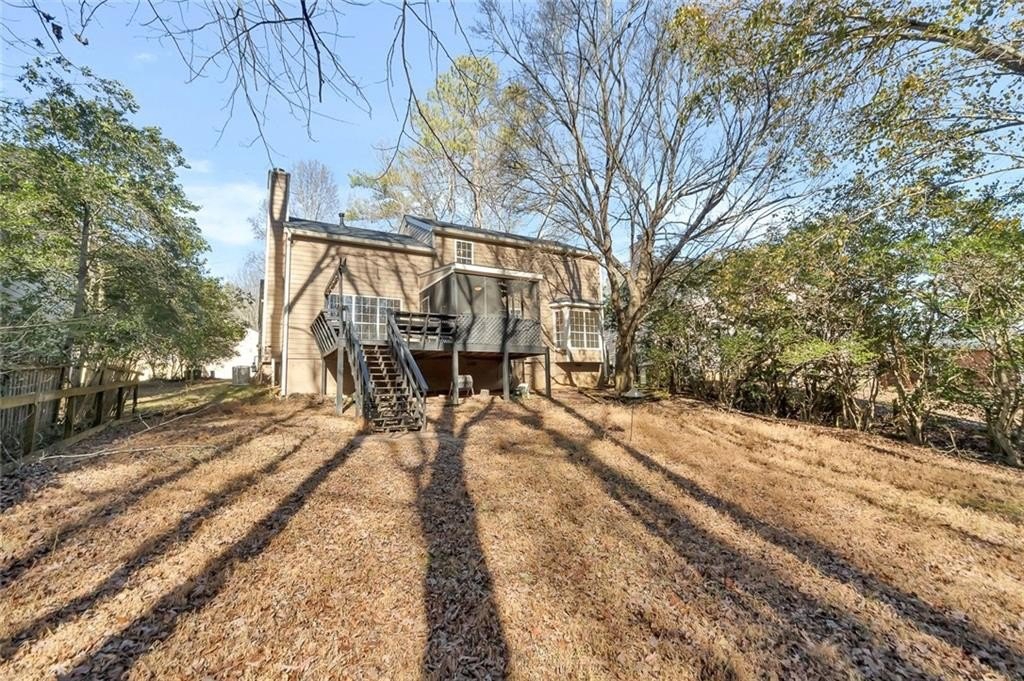 Welcome home to this charming traditional two-story home nestled in a quiet Alpharetta neighborhood with no HOA and no rental restrictions. Set on a .32-acre fenced lot backing to a peaceful creek, the backyard feels like a private escape filled with roaming deer, birdsong, and wooded views. Located in the top-rated Fulton County school district, this property offers a rare blend of calm living and unbeatable access - just minutes to Avalon, Downtown Alpharetta, Big Creek Greenway, and GA-400! As you enter, the main level boasts of natural light, beautiful hardwood flooring and an easy, flowing layout. A formal front living room provides flexible space, ideal for a home office or playroom, while a separate formal dining room with a bay window adds charm and elegance. The eat-in kitchen features stainless steel appliances, granite countertops, and a delightful window over the sink that frames views of the lush backyard. Open to the cozy fireside family room, the kitchen is perfect for both everyday living and entertaining. Step outside to the most enchanting screened-in porch, an ideal spot to unwind and take in the sights and sounds of nature—whether enjoying morning coffee or an evening breeze as wildlife passes by. An adjacent open porch offers space for grilling and gathering, with easy access to the expansive backyard, perfect for play, relaxation, and outdoor enjoyment. Upstairs, the spacious primary suite serves as a true retreat, complete with a large bathroom featuring double vanities, a separate soaking tub and shower, and a walk-in closet. Two secondary bedrooms share a full bath, with one offering an oversized walk-in closet and a bonus area ideal for additional storage. Recent updates include a brand-new roof, newer water heater and newer driveway providing peace of mind for years to come. Don't miss the opportunity to make this your new home sweet home!