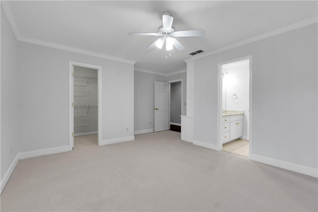Presenting a rare opportunity in St. Marlo Country Club's most prestigious enclave: 6,724 square feet of meticulously designed living space on half an acre of private, wooded grounds just a chip shot from championship fairways. Your elegant circular driveway with centerpiece fountain announces arrival at a residence where every detail has been considered. The main level delivers what discerning families require: a master suite with spa-inspired bathroom featuring dual vanities, separate soaking tub, and vaulted ceilings, plus a complete guest bedroom and full bathroom, no stairs necessary for comfortable living. The chef's kitchen showcases rich granite countertops, custom cabinetry, and premium appliances flowing seamlessly into a great room with soaring 2 story high ceilings, custom built-ins, and statement fireplace. Your butler's pantry with organizational center connects to formal dining seating twelve, while French doors open to an expansive deck overlooking your wooded sanctuary. Three generously proportioned bedrooms, two full bathrooms, and a versatile loft upstairs provide exceptional flexibility for family, guests, or executive office space. The terrace level defines this estate's true distinction: a complete second kitchen with pantry, professional-grade gym, dedicated media room, executive office, full bedroom and bathroom, plus separate exterior entrance providing 2,648 square feet of independent living space perfect for multi generational living. St. Marlo Country Club offers championship golf, resort-style clubhouse with fine dining, tennis facilities, swimming pool, and 24-hour gated security. Award-winning Forsyth County Schools including Lambert High School, ranked among Georgia's top public institutions. Three-car finished garage, brick construction on all four sides, mature landscaping, and among the largest residential lots in St. Marlo at half an acre. Minutes from Alpharetta's corporate corridor with consistent property appreciation and limited inventory availability. This is completeness without compromise.
