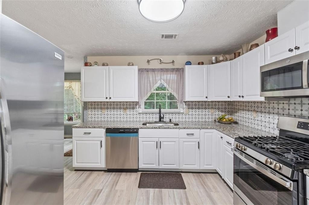 Stunningly Updated 3-Bedroom, 2-Bath Home in Stockbridge! Welcome to this beautifully renovated 3-bedroom, 2-bath home that perfectly combines modern style with everyday comfort. Step inside and enjoy the bright, open floor plan that’s perfect for both entertaining and relaxed living. Recent upgrades include fresh interior paint, brand-new flooring throughout, a new roof, and a state-of-the-art HVAC system for year-round comfort. The heart of the home is the kitchen, featuring sleek white cabinetry, luxurious granite countertops, and stainless steel appliances—a perfect mix of style and functionality. Outside, the spacious backyard is a true gem—ideal for outdoor gatherings, family activities, or just unwinding in a peaceful setting.