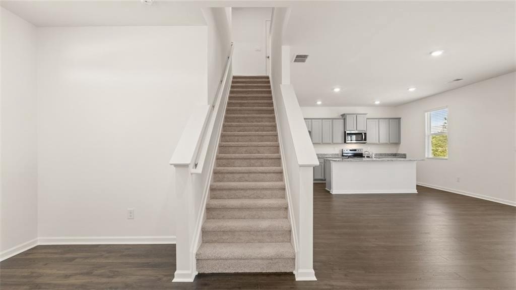 Minutes to I-85, Piedmont Newnan Hospital, and just 30 minutes to Downtown Atlanta! The Flora floor plan offers a spacious and versatile 4-bedroom, 2.5-bath design tailored for today’s lifestyles. The open-concept main level features a flex space perfect for a home office or formal dining, a generous family room, and a modern kitchen with quartz countertops, stainless-steel appliances, and a large island with bar-stool seating.