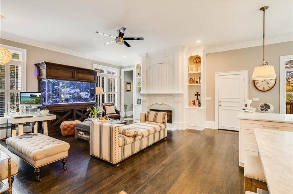 Designed for effortless living and entertaining, the main level offers a gracious living room, a separate dining room, and a convenient half bath. The inviting family room—complete with a fireplace—flows seamlessly from the kitchen. A grand primary suite or den features its own fireplace and is filled with abundant natural light.