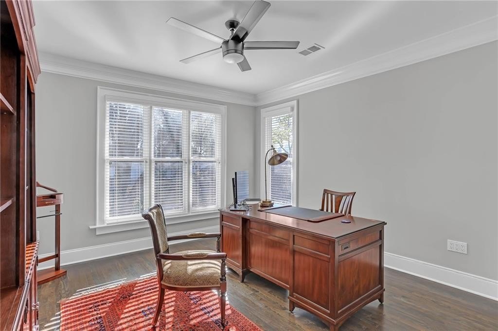 The third level offers fantastic bonus space with two office areas, a library, or playroom, plus a convenient half bath and walk in attic space for additional storage.