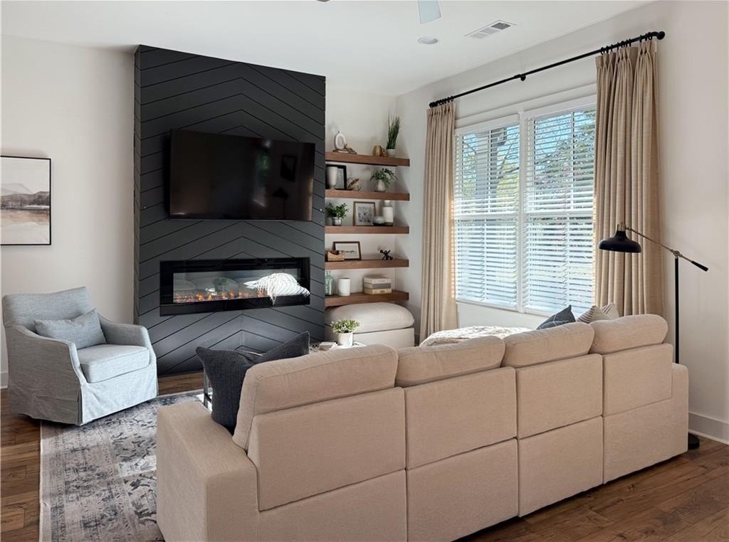 TOTALLY TURNKEY - FULLY FURNISHED (EVERYTHING stays - all appliances, 7 TV's, beds, sheets, kitchen supplies, security system, new Nest thermostats, new digital locks and more) - Perfect INVESTMENT PROPERTY or PRIMARY RESIDENCE. Enjoy the best of both worlds—lake living and a smart investment—with this beautifully designed townhome seconds from dining, shops, parks, and minutes for Lake Lanier marina's and events. One of 19 on Main’s most popular plans - The Danville Plan - end unit with so much style and in a perfect Flowery Branch location. Here are some of the fantastic features and highlights: • 3 Bedrooms & 2.5 Baths • Main level: Open concept living with a fresh, modern flow • Soaring 10' ceilings & wide-open family room • Chef-inspired kitchen with stainless steel appliances, shaker-style 42" cabinets, modern trim, quartz/granite counters & stylish tile backsplash • Recessed + pendant lighting for that perfect glow • Casual dining area • Powder room for guests • Upper level: • Loft -ideal for a home office, gaming lounge, or chill zone • Primary suite: • Spa-style bath with oversized “super shower” & double vanity w/makeup area • Walk-in closet that’s ready for your shoe collection • Two spacious secondary bedrooms with walk-in closets + full hall bath • On-trend finishes – designer LVP flooring, plush carpet, ceramic tile, 8' doors, and fresh, modern paint colors • Outdoor living: • Covered front porch with cozy fireplace, perfect for fall nights • Community & Location: • Low-maintenance living – HOA covers lawn care & limited exterior maintenance • Consider short or long term rental opportunities with no rent restrictions • Live modern. Live connected. Live downtown Flowery Branch!