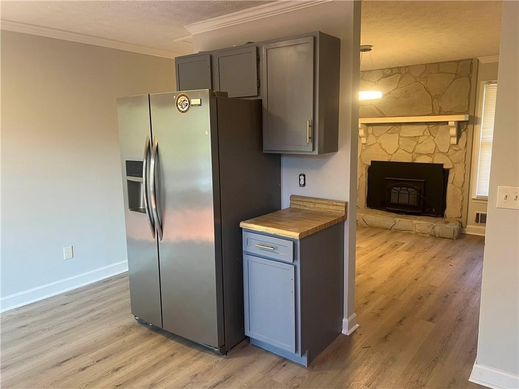Charming split-level home situated on a large, private lot with mature trees. The upper level offers three bedrooms and two full bathrooms, with multiple living spaces throughout for added flexibility. A cozy family room with a stone fireplace anchors the home, while the lower level provides additional open living space.