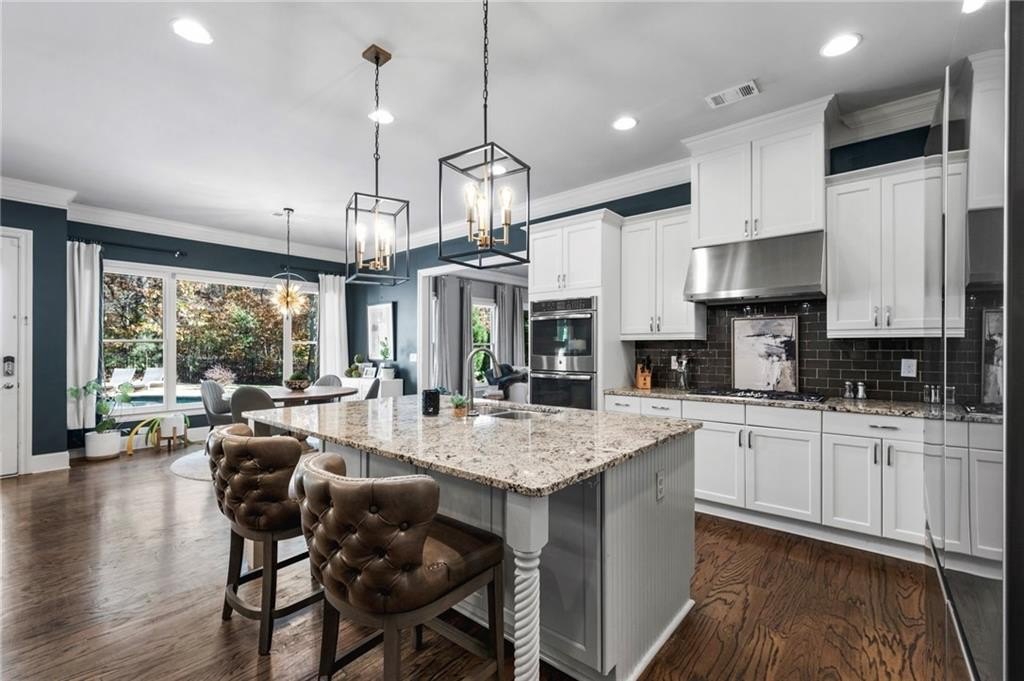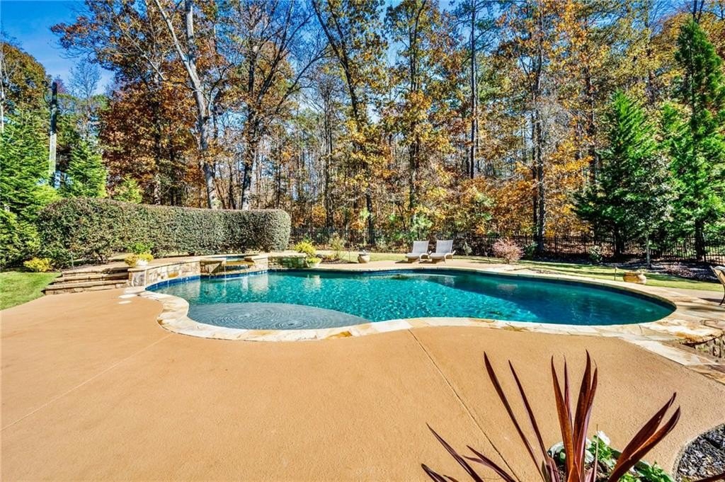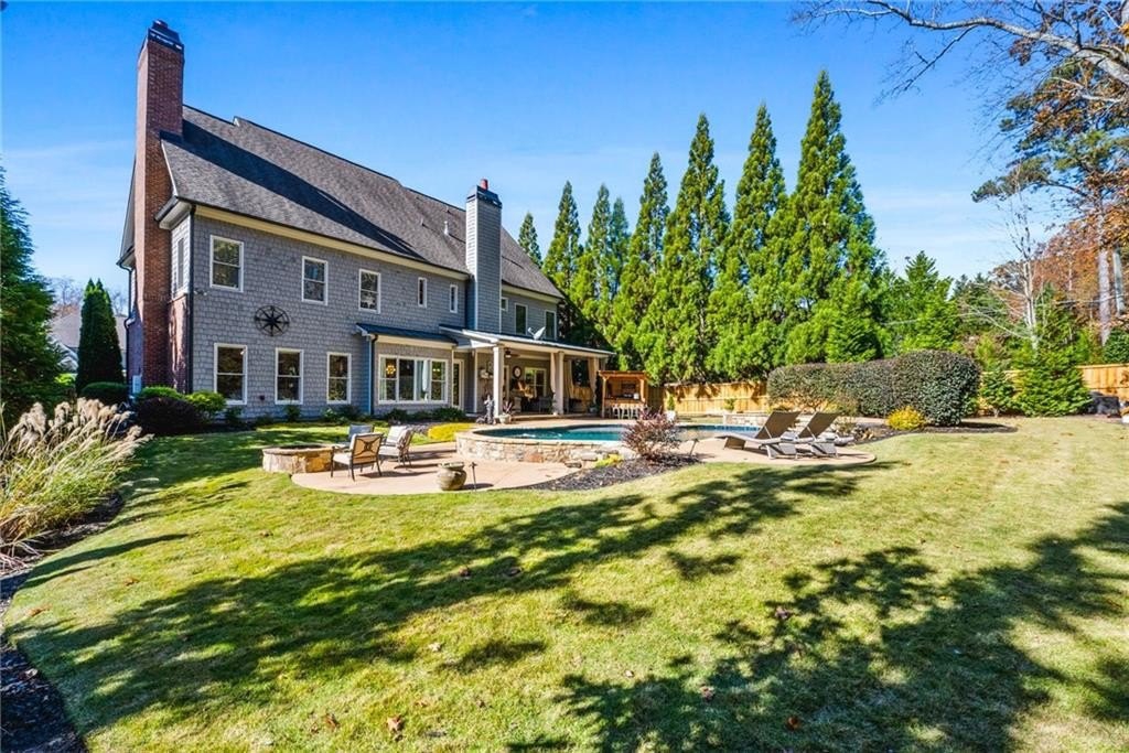 Highly desirable East Cobb Location!! An exceptional stone and cedar shake estate in the heart of East Cobb, where timeless architecture meets resort-level living. Custom landscaping has created a park like setting for this gorgeous home. This remarkable residence offers a rare blend of grandeur, sophistication, and modern comfort, beginning with an impressive three-story layout and an expansive, unfinished 3rd-floor walk-up bonus suite—already stubbed for a future bath or kitchen, allowing you to create the ultimate private retreat. Consider this a reverse basement plan! Very hard to find…..Step-less entry from the driveway through the main level leading to the covered patio and pool in the backyard! Step into a world of refined elegance as soaring ceilings and sun-filled spaces welcome you. The grand family room features a stunning fireplace and custom barn doors that open into the designer kitchen and breakfast/keeping room—complete with a second gas fireplace for intimate gatherings. Every detail has been thoughtfully curated, from the exquisite lighting throughout to the seamless flow of the open-concept layout. The resort-style backyard is a private paradise that is tucked away on a fabulous wooded lot. A luxury pool and hot tub, glowing night-scape lighting, a stylish fire pit lounge, and an inviting covered porch create an atmosphere worthy of a five-star retreat—perfect for sophisticated entertaining or peaceful relaxation. The main level boasts an oversized mudroom/mission room with extensive cabinetry, an island ideal for a secondary prep space or craft studio and offers a second laundry room with sink too.. There is a conveniently located guest suite with full bath and views to the private back yard. A grand dining room provides elegant seating for large dinner parties and holiday celebrations. On the second level, there are 3 additional bedrooms and a playroom/recreation room. The loft niche offers the perfect sanctuary for a home office or children’s study space. The sumptuous primary suite is a true haven, featuring a serene sitting area and a spa-inspired primary bath with dual vanities and water closets, a deep jacuzzi tub, and a luxurious dual-entry rain-head shower. A custom dressing room completes this indulgent retreat. Four additional bedrooms and NEW custom tile baths and a flexible bonus space offer comfort and versatility for family and guests. Sophisticated technology enhances daily living, including remote-controlled window shades, custom landscaping, front and rear architectural landscape lighting, NEST thermostat. This home is a must see and will not disappoint!
