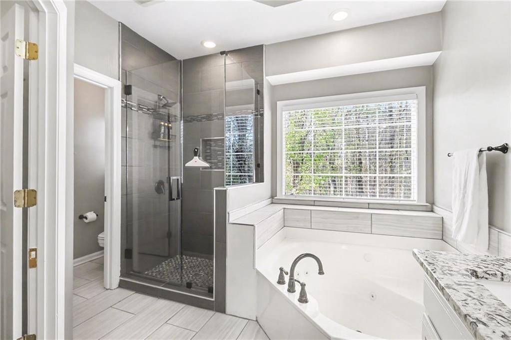 Upstairs are four spacious bedrooms, including an oversized owner’s suite with a spa-inspired bath renovated in 2022. Both secondary bathrooms have also been refreshed with modern finishes. Outside, enjoy a private back patio and a quiet neighborhood close to parks, dining, and everything Downtown Norcross offers.