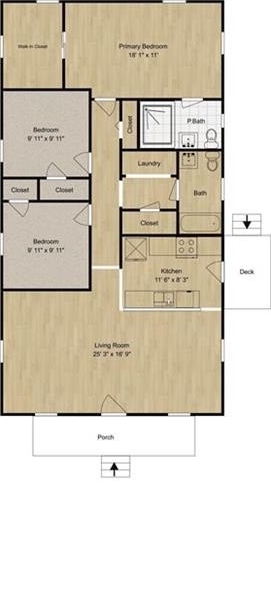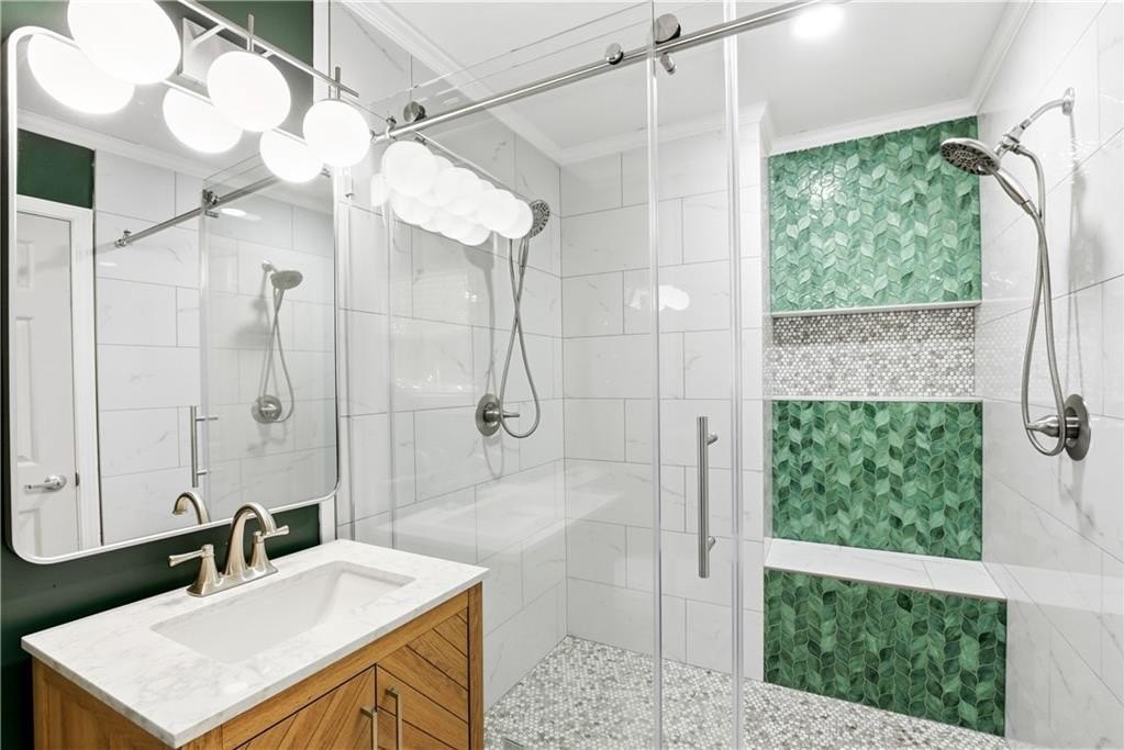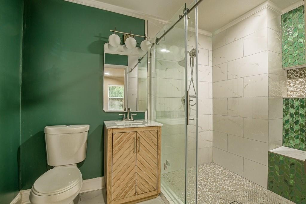 Welcome home to your cute bungalow in Lakewood, located just a few minutes from the Ampitheatre and a 10 minute walk to the restaurants, coffee shops, and local businesses of Lakewood. Most of the home's interior is freshly painted. Luxurious primary bathroom is brand new! The shower has double shower heads and a built in bench seat and shelf, both accented with gorgeous green ivy tiles. The chevron oak vanity, globe light fixture, and emerald paint add a touch of elegance. Oversized primary bedroom also features a walk in closet. Enjoy entertaining in the open concept living space and outdoors as well. Settle in under the cozy string lights adorning the rocking chair front porch and criss-crossing the fully fenced backyard featuring a deck and a hot tub (currently drained, but working fine). Prepare dinner on the large kitchen island with built in microwave and dishwasher, then saute on the 5 burner gas stove using herbs freshly harvested from your raised garden beds. The expansive pantry/linen closet with shelving opposite the laundry area makes storage and tidying a breeze!
