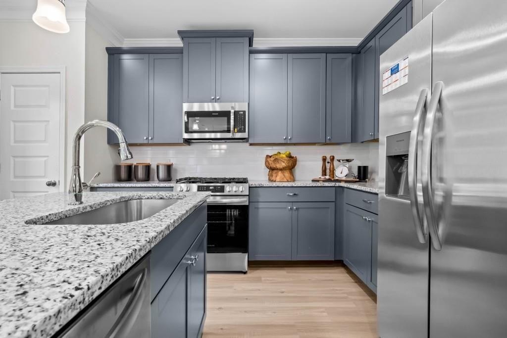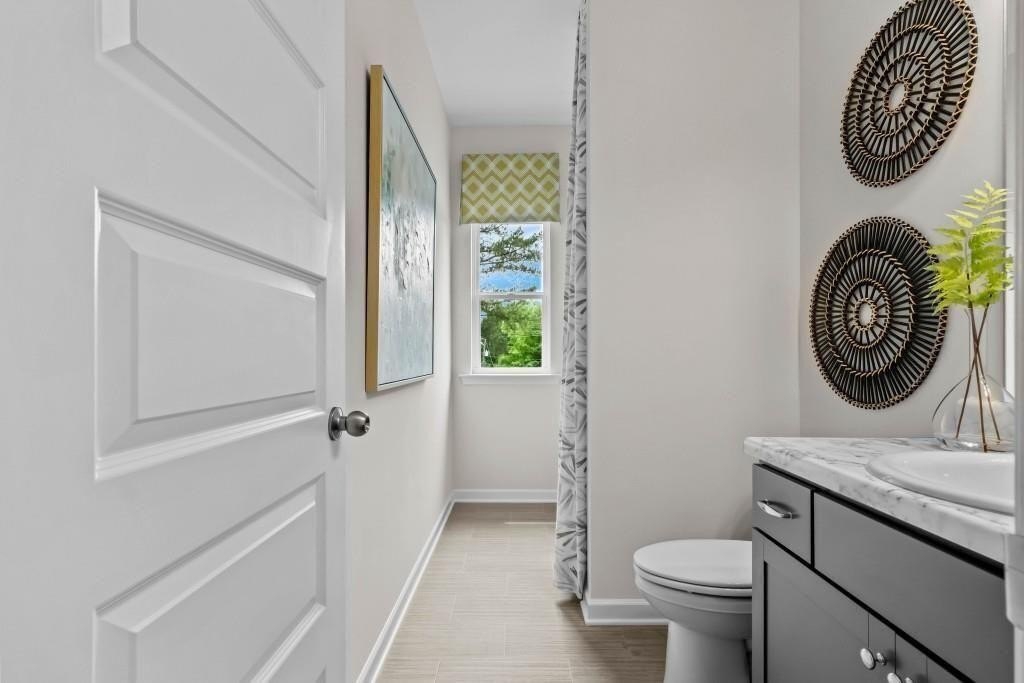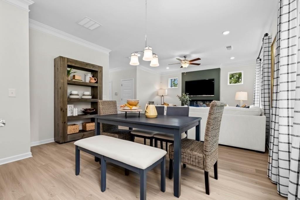Move in Ready! The Benson II plan in Kingston Park by Smith Douglas Homes. Greet guests from the wide, light-filled entry that leads to a connected living-dining-kitchen floorplan that spans the entire width of the home. The kitchen design maximizes efficiency with a planning desk work station, a center island, upgraded cabinets with 42" uppers for additional storage and a tile backsplach. An electric linear fireplace in the family room creates an inviting space. Throughout the main floor upgraded vinyl plank flooring has been added. Upstairs, you'll find the primary ensuite with a tray ceiling, spacious closet, two additional bedrooms, a bath with a conveniently located laundry room, and a loft with a storage closet. Sited on a private wooded homesite! Primary photo is of home secondary photos are representative of plan not of actual home. Extra special Seller incentives with the use of preferred lender.