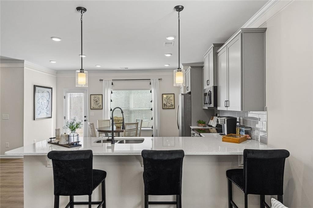 Move in Ready December! The Maddux II plan, located in Smith Douglas Homes Sanders Park community. This 3BR/2.5BA townhome with a two-car garage features an open concept floorplan with a living-kitchen-dining combination. Entry foyer with convenient coat closet ideal for greeting guests. A linear fireplace is the focal point of the room of the family room and black interior finishes add a modern flair. The kitchen has upgraded cabinets with 42: upper for additional storage, a tile backsplash, pantry, granite counters, and LVP flooring throughout the living areas on the main floor and in the primary bath, hall bath and laundry. An open iron rail stairway on the first leads to the second floor, where you will find the owners suite with a substantial closet, and a large tile shower. Two bedrooms, a shared hall bath and a convenient laundry room finish out this floor. Nine ft ceiling heights on both levels. Planned neighborhood pool and the lawn maintenance included in your HOA fees leaves you more time to do the things you love! Photos are representative of plan not of actual home being built. Seller incentives with the use of preferred lender.