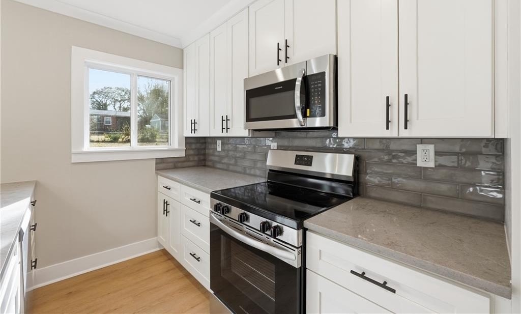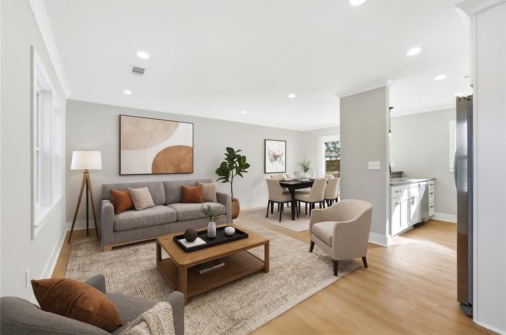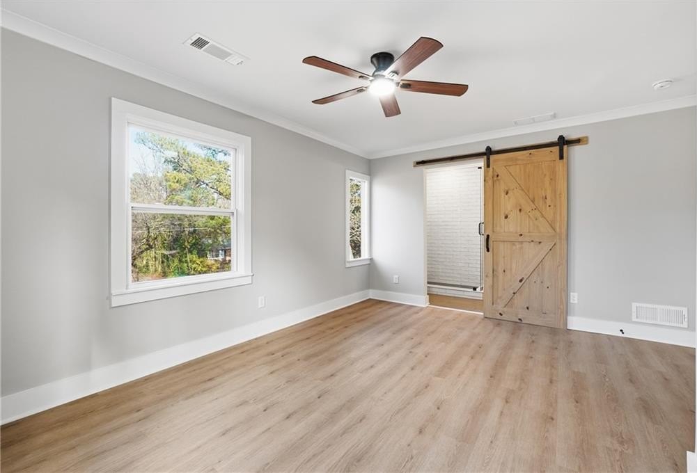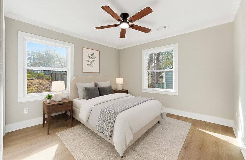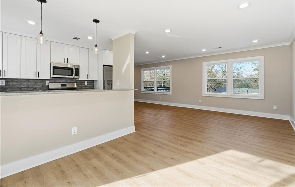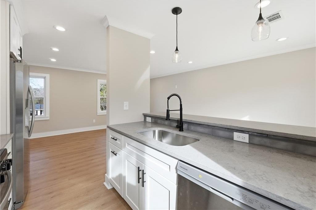 Renovated home is ideally located just minutes from East Lake Golf Club, Decatur Square, DeKalb Farmers Market, Emory Hospital, the YMCA, top-rated schools, stores, shops and restaurants. New driveway, new front and back decks, new electrical, plumbing, HVAC, water heater, windows, roof, flooring, doors, vanities, toilets, and remote-controlled ceiling fans and additional fencing that creates a fully enclosed, private backyard. Inside, the home offers luxury vinyl plank flooring throughout and an open, modern layout. The gourmet kitchen is equipped with quartz countertops, brand-new Frigidaire energy-efficient stainless steel appliances, and soft-close white shaker cabinetry. Primary suite includes a custom barn door leading to a luxurious en-suite bathroom with a walk-in shower and double vanity. Two additional bedrooms share a second full bathroom. This is truly a move-in-ready home, schedule your showing today!
