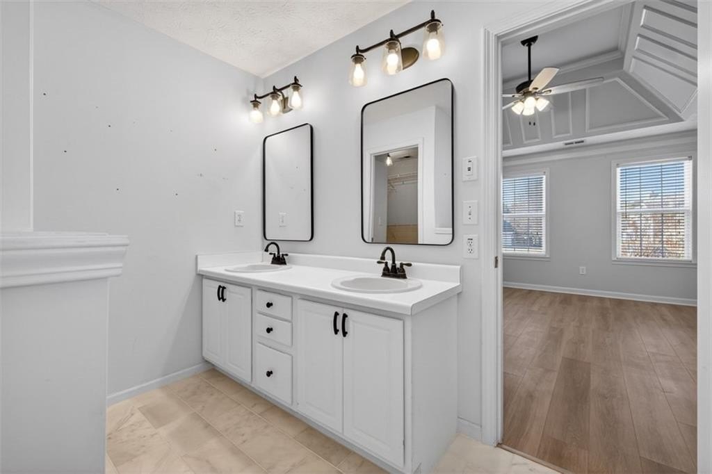 This 4 bedroom, 2.5 bath home is perfectly situated on a level cul-de-sac lot in a convenient Loganville location. It offers the space, updates, and layout you are looking for. The heart of the home is the kitchen with granite countertops, a large island, and stainless steel appliances, all flowing into the cozy family room with gas logs that remain with the home and includes a separate dining room for entertaining guests. Upstairs, you'll find a huge owner's suite with a private sitting area, a walk-in closet, and a spa-like bath featuring a whirlpool tub and tile flooring. Additional highlights include newer windows throughout, updated flooring, and a newer HVAC system for comfort and efficiency. Outside, enjoy a large fenced backyard that's perfect for pets, play, or entertaining. The low maintenance vinyl siding and prime location close to shopping, dining, and schools make this home a standout in the Loganville area. Truly move-in ready and loaded with value. It's priced to sell and checks all the boxes, so schedule your showing today before it's gone!