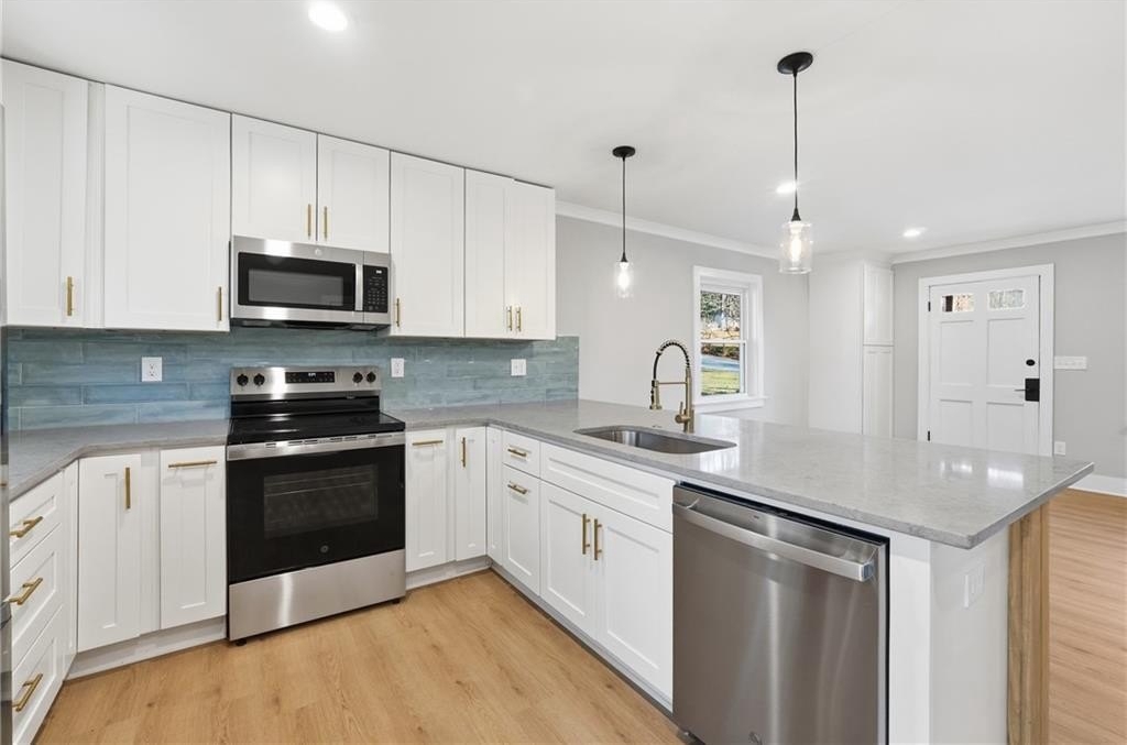 Stunning full 2025 luxury open floor plan modern remodel. Minutes from East Lake golf course, downtown stores, shops and restaurants, Dekalb Farmers Market, Emory district, and top rated public and private schools. Four sides brick with large back yard, oversized rear deck and covered porch. New electrical, plumbing, mechanicals, HVAC, roof, gutters, insulation, Vinyl windows, engineered plank flooring throughout. Enjoy a new gourmet chefs’ kitchen with stainless appliances, shaker cabinets, quartz countertops, and undermount sink. Oversized primary suite on main with double vanity, large closet, frameless shower enclosure, his & her shower heads, quartz counters and custom tile throughout. Breakfast bar, flat casing and cove molding ceiling trim, all new interior doors and so much more.. Too many new details to write or read. It’s a must see. Call listing agent for easy showing appointment.
