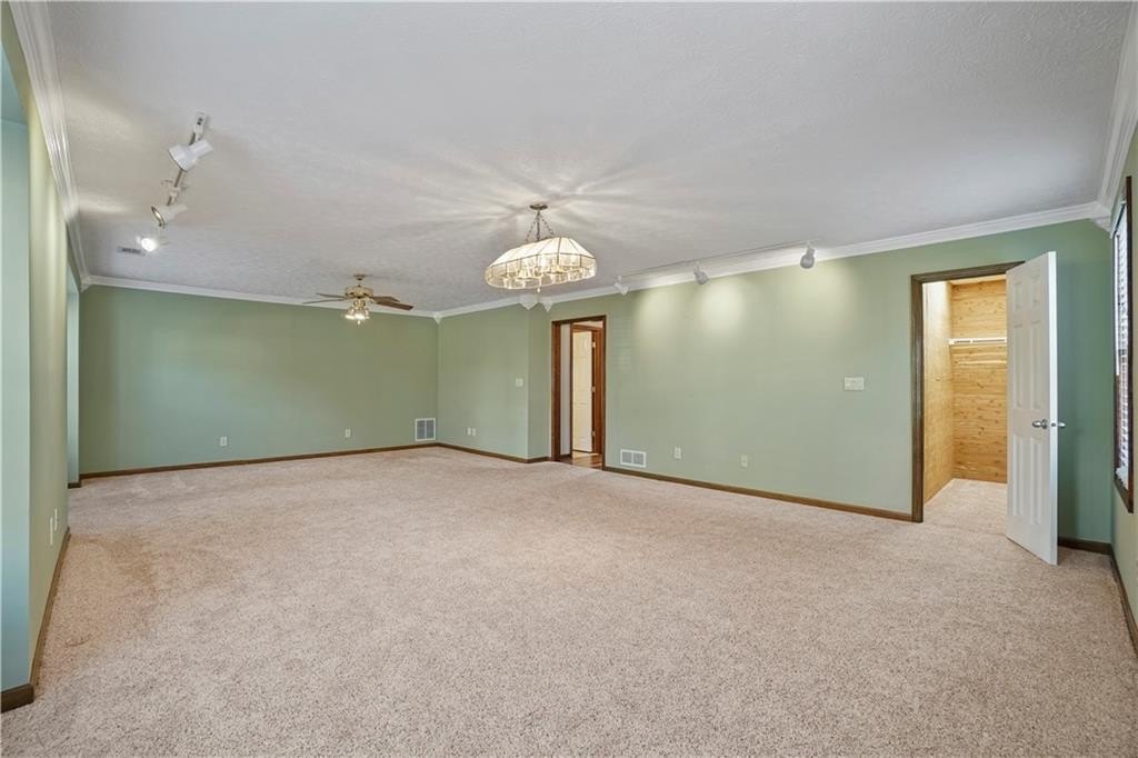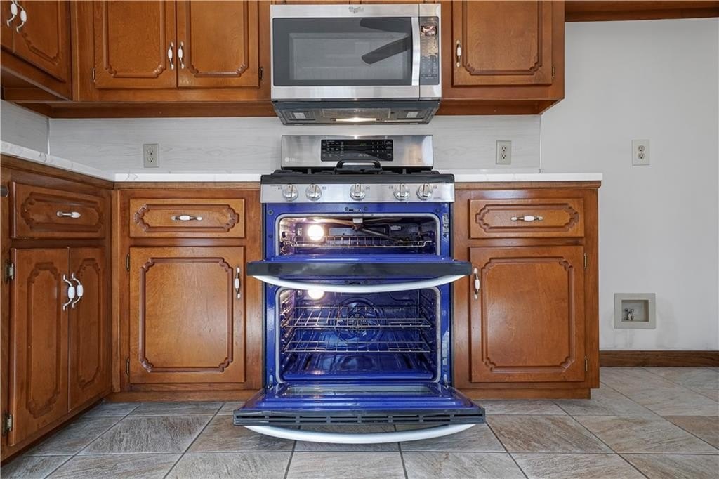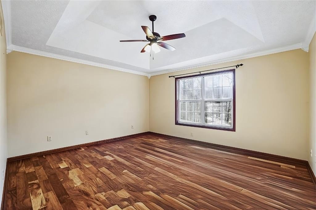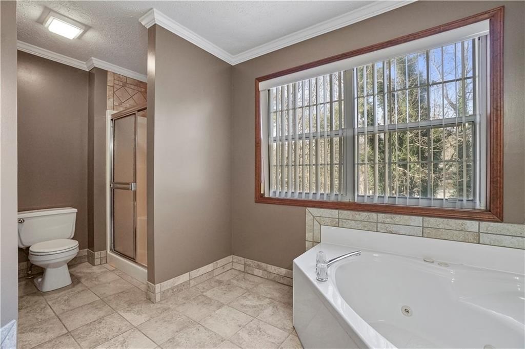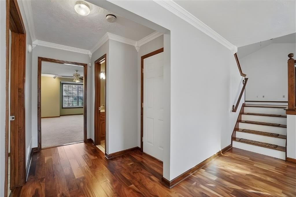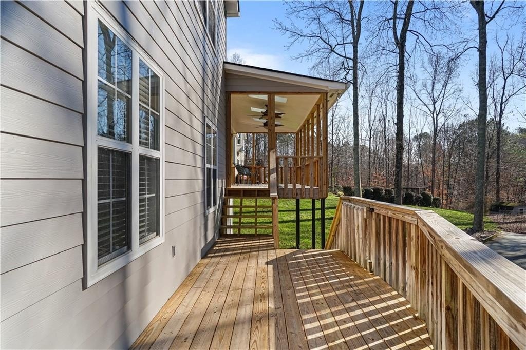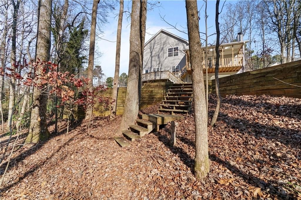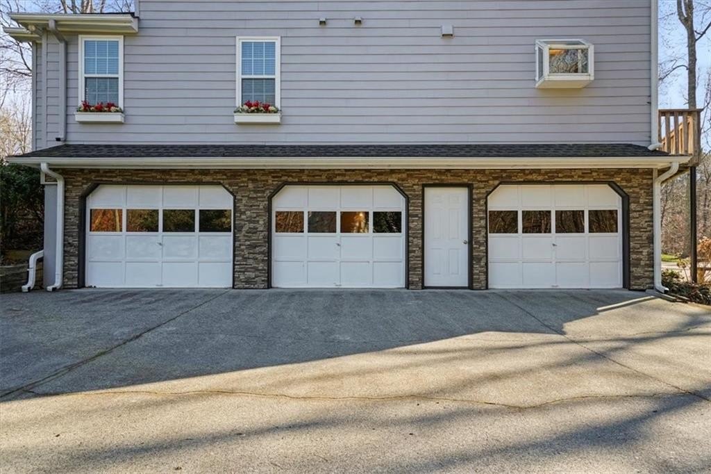 This is an exceptional value that rarely comes along in this prime Woodstock location. A true gem offering 4 bedrooms, 3 full baths, and over 4,000 square feet, set on a stunning 1.2+ acre lot with a babbling creek, NO HOA, and a rare 4-car garage—including a rear-facing fourth bay accessed by an extended driveway that continues beyond the garage for RV, boat, or trailer parking with power already in place and room to build. Located in the sought-after Cherokee County school district with beautiful views and priced to sell quickly. A welcoming rocking-chair front porch with beadboard ceiling and recessed lighting immediately sets the tone for the thoughtful design found throughout the home. Inside, rich deep espresso–stained woodwork creates continuity across the living spaces, carried through door trim, baseboards, stair railings, and architectural details. The living room features newer carpet, vaulted ceilings, and a raised-hearth brick fireplace anchored by a richly stained oak mantel that serves as a true statement piece. High-quality fiberglass exterior doors with decorative glass are used consistently throughout the home, reinforcing the cohesive and elevated aesthetic. The kitchen blends style and function with stunning quartz countertops, solid wood cabinetry, tile flooring, pantry storage, and space for an eat-in dining area. The range was converted to gas cooking and upgraded to an LG double oven, while direct access to the lower deck makes outdoor grilling and entertaining effortless. The adjacent formal dining room comfortably seats 12+ and flows seamlessly into the kitchen, creating an ideal layout for hosting and everyday living. Down the hall, an oversized laundry room offers flexibility to add a sink or create a true mudroom and is conveniently located directly across from the garage entrance. Just a few steps down, a massive fourth bedroom provides incredible versatility as a media room, in-law or teen suite, or dedicated homeschooling space. This room was enhanced with two additional windows that flood the space with natural light and features like-new carpet, crown molding, track lighting, and a walk-in closet. A full bathroom with tile flooring and granite countertops completes this level. Upstairs, the primary suite offers a quiet retreat, continuing the hardwood flooring and crown molding and featuring a spa-style bath with custom tile flooring, a double granite vanity, a soaking tub, and a spacious walk-in closet. The generously sized secondary bedrooms feature the same like-new carpet and share a full bathroom with granite countertops and tile finishes. Throughout the home, finishes were intentionally selected to create a cohesive and timeless look, with consistent hardwoods in main living areas, plush like-new carpet in bedrooms, and tile reserved for wet spaces—resulting in a design that feels polished, balanced, and truly move-in ready. Outdoor living is equally impressive, with a rebuilt covered deck accessed directly from the living room and connecting seamlessly to the lower deck for easy entertaining. The upper deck features a beadboard ceiling with recessed lighting, Velux skylights, and ceiling fans, thoughtfully designed to mirror the architectural details of the front porch and the awning over the three-car garage. Across the driveway, a separate set of stairs leads down into the backyard and toward the creek, preserving privacy while providing convenient access to the natural setting. The three-car garage is accented with stacked stone veneer that pairs beautifully with the Hardie plank siding, creating a polished and intentional exterior design. Additional highlights include a 5-ton 90% efficiency HVAC system (2013), water heater (2018), septic serviced May 2025, roof 12 years old, and a neighborhood Flock security camera system despite no HOA. A rare opportunity combining acreage, garage capacity, privacy, upgrades, and location—this home will not last.