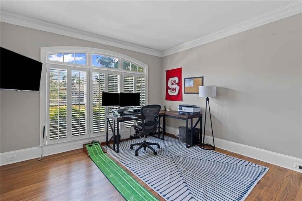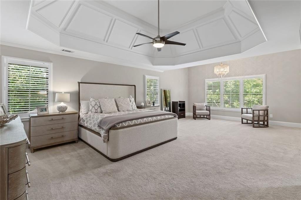 Welcome to this exceptional home offering 7 bedroom, 6.5 baths, an oversized bedroom & bathroom on the main & a finished terrace, in the highly sought after Crooked Creek gated golf community, in Milton, with top ranked North Fulton schools! This magnificent opportunity awaits discerning home buyers seeking a spacious & versatile living space that truly embodies comfort & luxury. As you approach this stunning property, you will immediately notice its captivating curb appeal on a cul-de-sac lot, featuring the architecturally detailed full brick facade, that perfectly blends traditional charm with contemporary elegance. Beautiful landscaping, including a high end turfed backyard, serves as a picturesque backdrop for gatherings and outdoor activities with family and friends. Upon entering the grand foyer, you are welcomed by an abundance of natural light pouring in and beautiful hardwood floors throughout, creating an open and airy atmosphere. To your right, a formal dining room accommodating 12+ guests and to your left, a large office with glass french door for privacy. Stepping into the expansive living area with a wall of windows and coffered ceilings, you will appreciate the seamless flow between the living area, breakfast/casual dining room, desk area and kitchen, allowing for a perfect balance of entertaining and intimate gatherings. The warm, inviting palette of the interior design is complemented by tasteful finishes. Impeccably designed with a modern touch, the heart of this home lies in the gourmet kitchen, which is a chef's dream come true. Featuring a generous layout, an abundance of cabinetry, the large island, an oversized custom walk in pantry, and high-end appliances including a Zub-zero paneled refrigerator and large wine storage, this kitchen sets the stage for culinary creativity and open-concept dining experiences. The main floor is complete will an oversized guest room connected to a full bath, as well as you will appreciate the half bath on the main. As you wander upstairs, you will discover the oversized luxurious owner's suite with vaulted ceilings and sitting room, then the exquisite bathroom with it's oversized high end tiled shower, soaking tub, the abundance of counter space and double vanities, that is then complemented with the expansive double sided closet. Upstairs you will also find an additional 4 spacious bedrooms that offer a sanctuary for rest and rejuvenation. Each bedroom is designed with comfort in mind, providing ample closet space and easy access to well-appointed bathrooms. One en-suite. The welcoming and functional floor plan continues as you head to the expansive terrace level that offers high ceilings and an abundance of natural light. You will find a beautiful full bathroom, an inviting large wet bar to gather at that includes a sink & mini refrigerator, an oversized theater room (new projector & screen remain), a separate living/gaming/tv room and 2 flex rooms that would make great bedrooms/offices/gyms/etc. The outdoor space is a veritable paradise, with a beautifully designed new deck that beckons for alfresco dining and relaxation. The backyard is a private oasis, perfect for entertaining guests or unwinding after a long day. The community offers fabulous resort-style amenities, to include the gated entrance with 24-hour security, an 18 hole golf course, beautiful clubhouse with meeting rooms/ catering kitchen/bar, 10 lighted tennis courts & 4 lighted pickleball courts, basketball court, Jr. Olympic-sized pool with a splash pad & water slide & playground. Crooked Creek is conveniently located near downtown Alpharetta to include an abundance of shopping at dining at Halcyon, Avalon, Crabapple as well as parks and Ga 400. This home is a must-see!