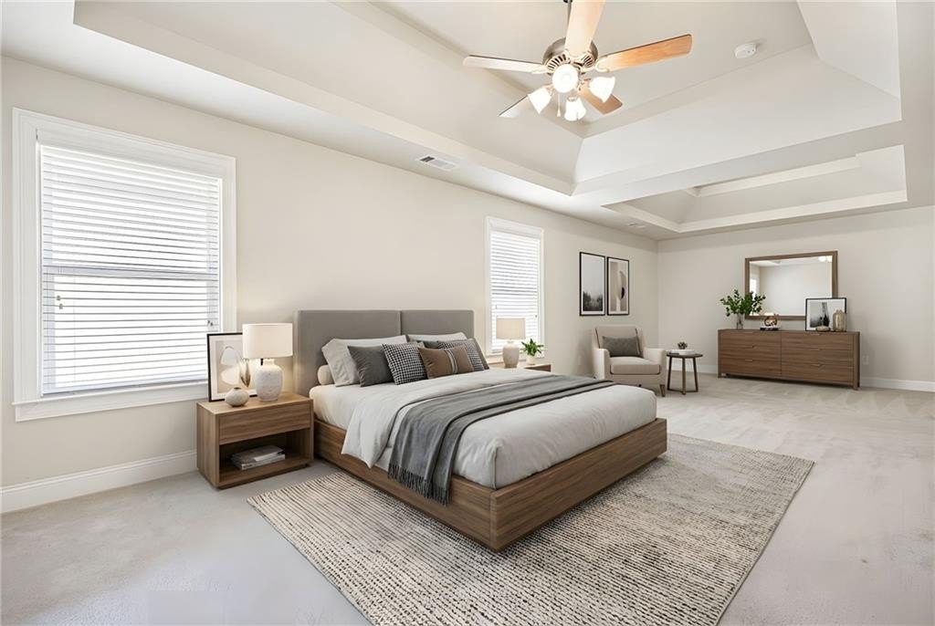 Spacious • Move-in Ready • Guest suite on main • Swim/tennis community! Welcome to 66 Lanier Ridge in Acworth, a well-maintained, move-in-ready home with generous living space, a flexible floor plan, and thoughtful architectural details throughout. A covered front porch and two-story foyer create a welcoming entry. The main level features crown molding and deep baseboards, a formal dining room with coffered ceilings and chair molding, and a separate office or formal living room ideal for work or flex use. The family room with a fireplace opens to the kitchen, designed for both everyday living and entertaining. The kitchen includes granite countertops, stainless steel appliances, a center island with a breakfast bar, and an oversized breakfast area/keeping room. A half bath, guest bedroom, and full bathroom on the main level provide added convenience and flexibility. Upstairs, the oversized primary suite features a sitting area and a double tray ceiling. The ensuite bath offers a soaking tub, tile shower, separate vanities, and dual walk-in closets. A loft space outside of the primary suite can serve as a second living area, media room, or office. Two bedrooms share a Jack-and-Jill bathroom with dual vanities and separate water closets. An additional bedroom features vaulted ceilings and a private ensuite bath. A large laundry room and attic storage complete the upper level. Outdoor living shines with a screened porch and patio, perfect for relaxing or entertaining. A two-car attached garage completes the home. Located in a swim and tennis community with convenient access to Cranes Coffee, historic Downtown Acworth, Logan Farm Park, Lake Acworth, and Cauble Park, and shopping and dining along Hwy 92.