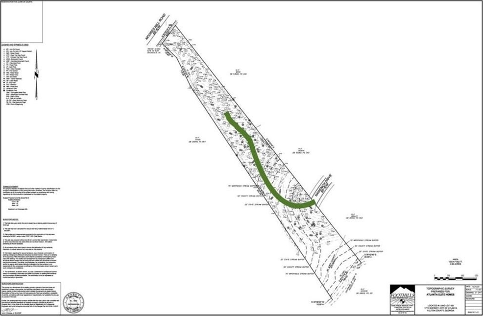 Privacy, privacy, privacy in Buckhead’s Brandon Neighborhood! Bring your desire to build and be wrapped in nature, your need to get away from it all, and your imagination for a custom home cloaked in privacy! All this at the end of prestigious Nawench Drive, a convenient location with quick access to Buckhead’s business district, shopping and dining, and top-tier schools. This large 2.7 acre estate lot offers the perfect opportunity to build your dream home on a quiet, leafy lot and be wrapped in privacy. Build a formal garden and pool, or experience everything nature has to offer by letting it remain as a wooded paradise. Off Howel Mill Road, south of Moores Mill and north of Peachtree Battle, Nawench is an exclusive street with this lot at the dead end. The owner’s previously approved building plans are available as a placeholder, to help with your inspiration and ideas. Trees to be removed for the footprint of the house are marked. Wear you boots to hike this wooded nature preserve and experience the opportunity to step over the babbling brook and find the perfect homesite.