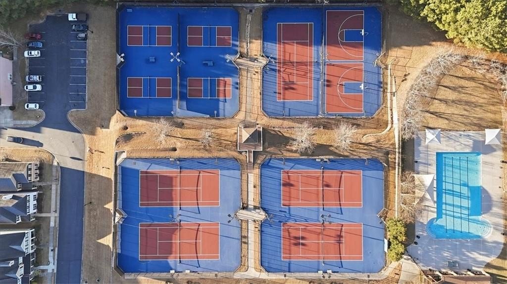 Start off the new year in your new home! The home features 10-foot ceilings, a fireplace flanked by built in shelving, two bedrooms with access to their own bathrooms, and flex/open area that would make a great office, dining or play room. The kitchen overlooks the spacious family room with lots of natural light. Upgraded stainless steel appliances and washer and dryer remain with the home! The courtyard has a privacy fence, covered patio, and even a doggy door! Updates include built in shelving in the closets, new water heater in 2024, and garage door/opener were replaced in August of 2025. The neighborhood offers so many wonderful amenities including an Olympic-sized swimming pool, a clubhouse, tennis courts, pickleball courts, a basketball court, playground, pavilion, and fitness center! You are also walking distance to the neighborhood cafe, Cafe Bom Dia, and bakery, Bananas and Beehives, in this great live, work and play community. It's conveniently located minutes from Downtown Woodstock, one exit north of the The Outlet Shoppes at Atlanta, and easy access to the Peach Pass Express Lanes. Welcome home!