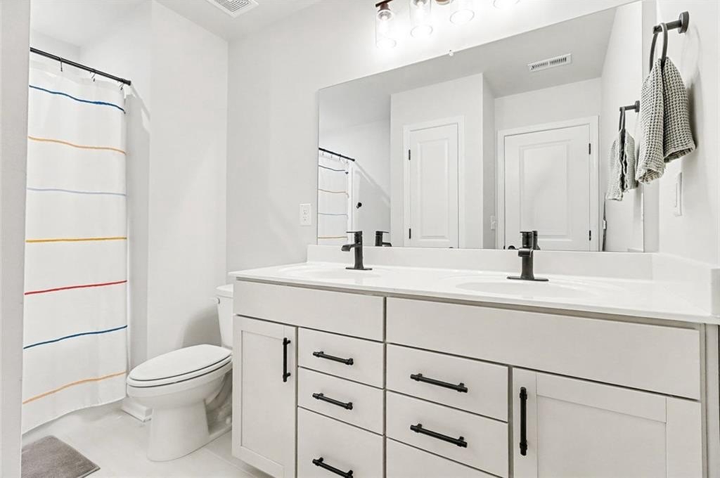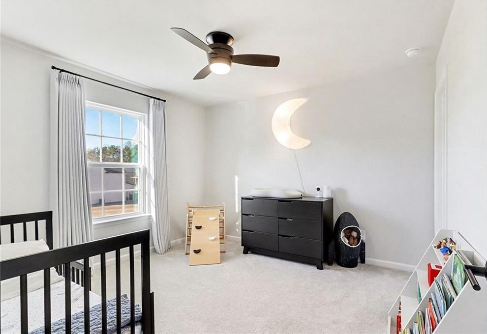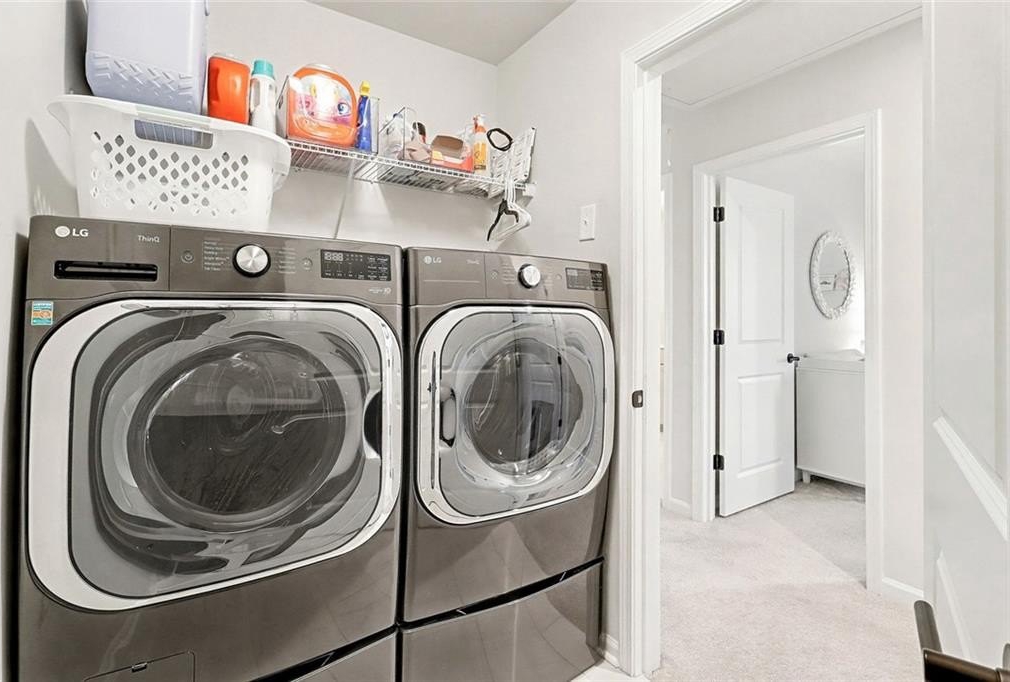 Upstairs, the owner’s suite is a true sanctuary with an additional 100+ square feet- thanks to an extended sitting room overlooking the backyard. The owner’s bath includes an upgraded tub and shower with dual walk-in closets. One secondary bedroom has its own ensuite bath, while the other two bedrooms share a bath off the centralized loft. The convenient upstairs spacious laundry room adds extra ease to everyday living.